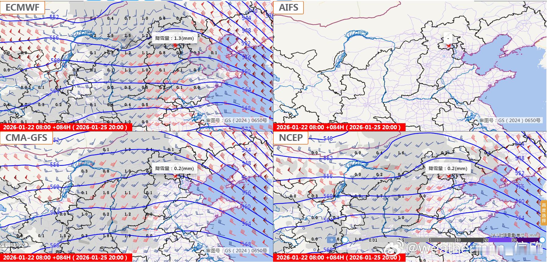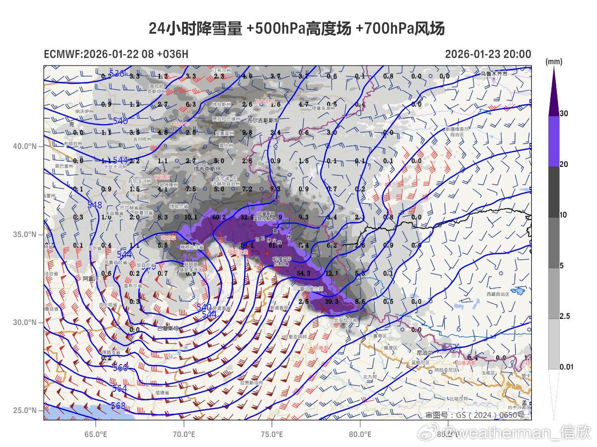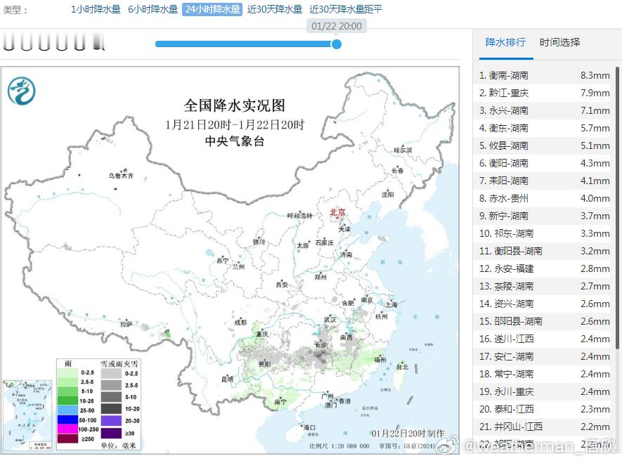 【雨雪】昨晚到今天,雨雪呈现缩减的趋势。今天17-20时的逐小时降水量榜,又出现凑不齐10个的情况。未来2天,中东部降水稀少,但西部地区降水会发展增多。从阿富汗-巴基斯坦一带,有个深厚的高空槽和冷涡东移,槽前暖湿气流+槽前的上升运动和地形抬升,将导致新疆西南部和西藏西部出现强降雪。数值预报给出克什米尔一带山区的降雪量甚至可能超50毫米。1月22日晚-23日,新疆南疆西部山区和西藏西部等地部分地区有大到暴雪,局地大暴雪(20~28毫米)。1月23日20时至24日20时,西藏西部等地部分地区有大到暴雪(10~13毫米)。之后高空槽继续东移,25-26日中东部地区降水增多。目前看在华北黄淮等地,25日-26日还有可能出现降雪。南方因为未来回暖明显,基本还是降雨为主。从数值预报看,25日700百帕有西南风输送水汽,从北京综合廓线图看(图9),近地面还有东南风。北京从25日下午到26日晨,水汽动力配合较好,因此有较大概率会出现降雪。未来继续追踪。