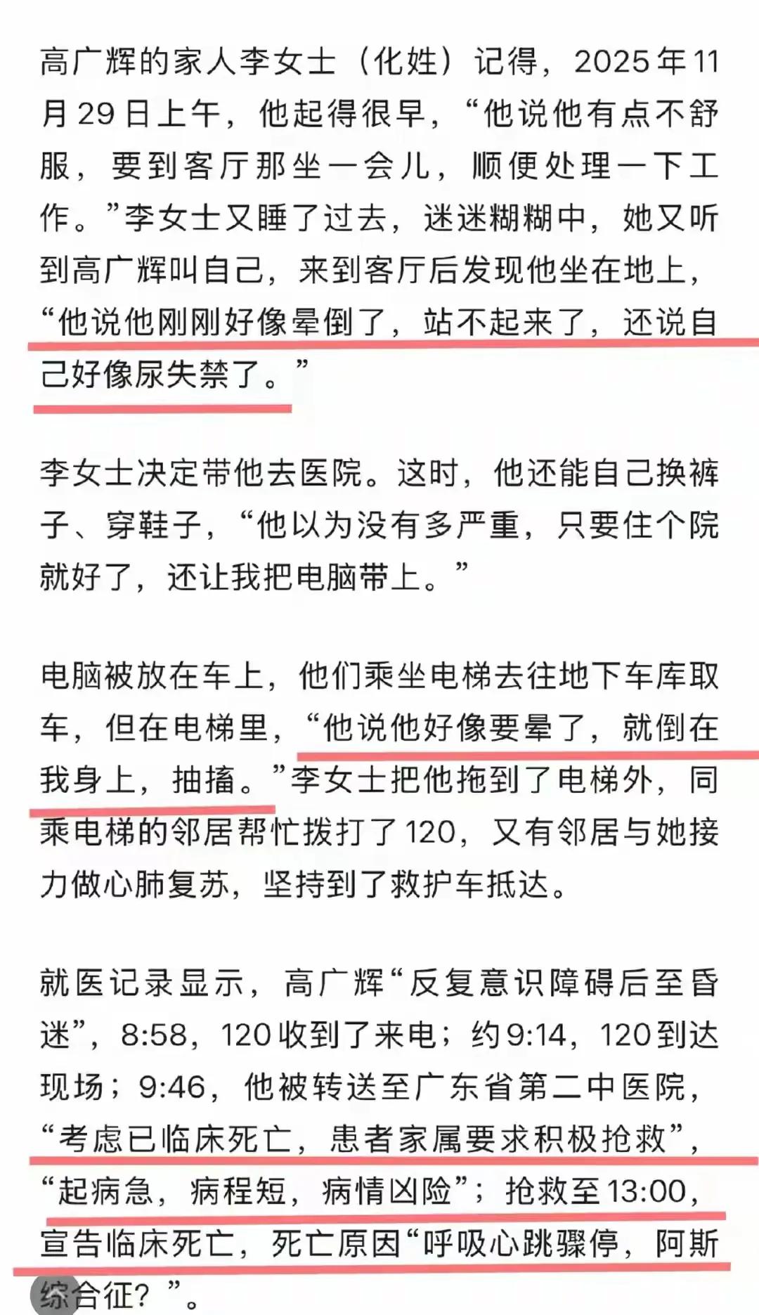 程序员高广辉死后却不能进祖坟。 程序员高广辉的妻子说,她的丈夫10岁左右的时候从河南到了广东,在广东读书工作拼搏了十几年。32岁疾病离世葬回河南,但是不能入祖坟。只能葬在隔壁的隔壁的村。这是什么规矩啊?自家的人去世了竟然不能葬入祖坟。 高广辉的妻子还透露,在他抢救期间曾经被拉入工作群,死亡后微信还收到工作消息。在他离世的那个周末,他也在处理公司布置的任务。从发病到离世不过四个小时。