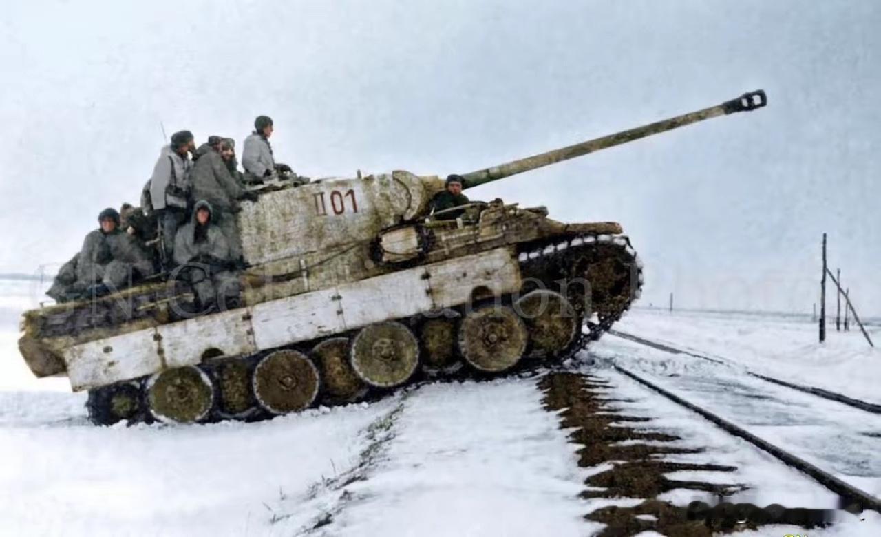 “黑豹”坦克在东线,1944年。二战德国陆军于1943年投入使用的“黑豹”中型坦克,是二战期间最具代表性的装甲战斗车辆之一。 该型坦克的研制始于1942年,直接诱因是东线德军遭遇了苏军T-34坦克的冲击。德国工程师在参考了倾斜装甲、宽大履带等设计理念后,开发出了这款战斗全重约45吨的中型坦克。其最具威力的装备是一门70倍径75毫米坦克炮,该炮发射的穿甲弹在1000米距离上可击穿约140毫米均质钢装甲,这一火力性能在战争后期仍具优势。 在防护设计上,“黑豹”坦克车体首上装甲采用55度倾角的80毫米钢板,理论防护效能显著。行走装置采用交错式负重轮布局,配合700马力汽油发动机,使其公路最高时速可达55公里。然而,复杂的工艺导致生产工时漫长,平均每辆坦克需要约20万工时才能完成,远超同期其他坦克。战争期间,包括改进型号在内的总产量约为6000辆。 从战场表现看,“黑豹”坦克在开阔地形和远距离交战中优势明显,但其机械可靠性问题始终未能彻底解决,频繁出现的机械故障导致大量战损。其侧面防护相对薄弱的缺陷,也在近战中被对手充分利用。总体而言,“黑豹”坦克体现了当时德国在机械工程方面的技术能力,但其复杂的设计与战时德国日益匮乏的资源之间的矛盾,最终限制了它的实际战果。该型坦克的诸多设计特点,为战后各国坦克发展提供了重要参考。 二战德国坦克 历史 历史老照片 二战 德国 军事 军迷发烧友 武器装备