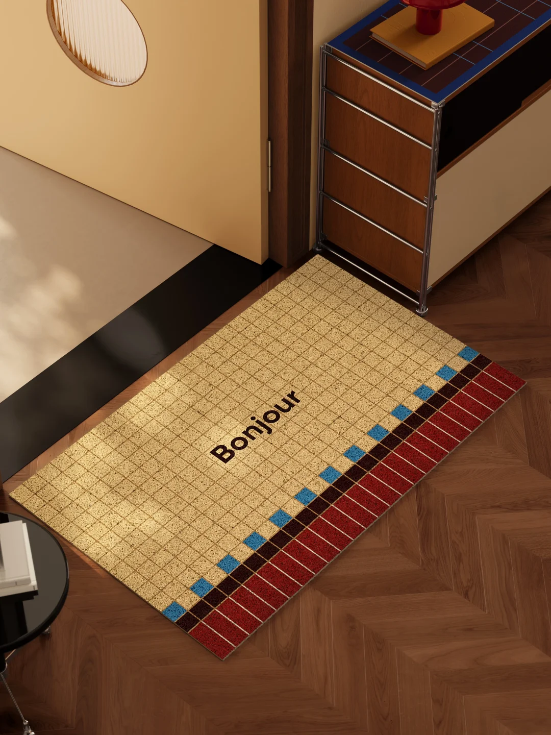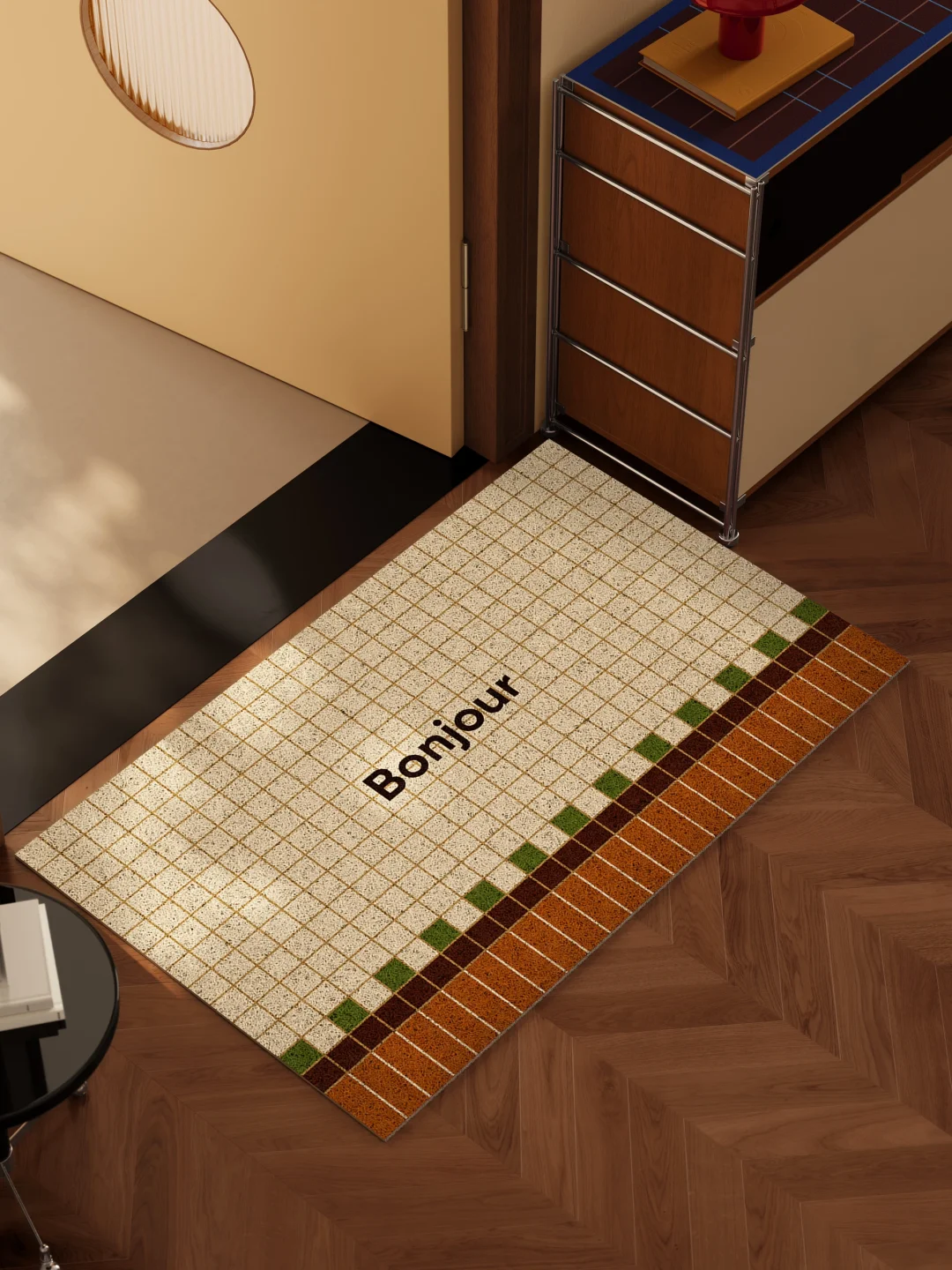 复古色盘在玄关重新点亮 几何撞色打破沉闷 每一道利落线条,都是电影美学的定格 低饱和米黄基底托住包豪斯的秩序感 ✅ 紧密材质强力刮沙藏尘,雨天也能锁牢水渍 ✅ 耐造抗造,高频使用依旧如新 ✅ 防滑底纹稳稳贴地,不用反复整理移位