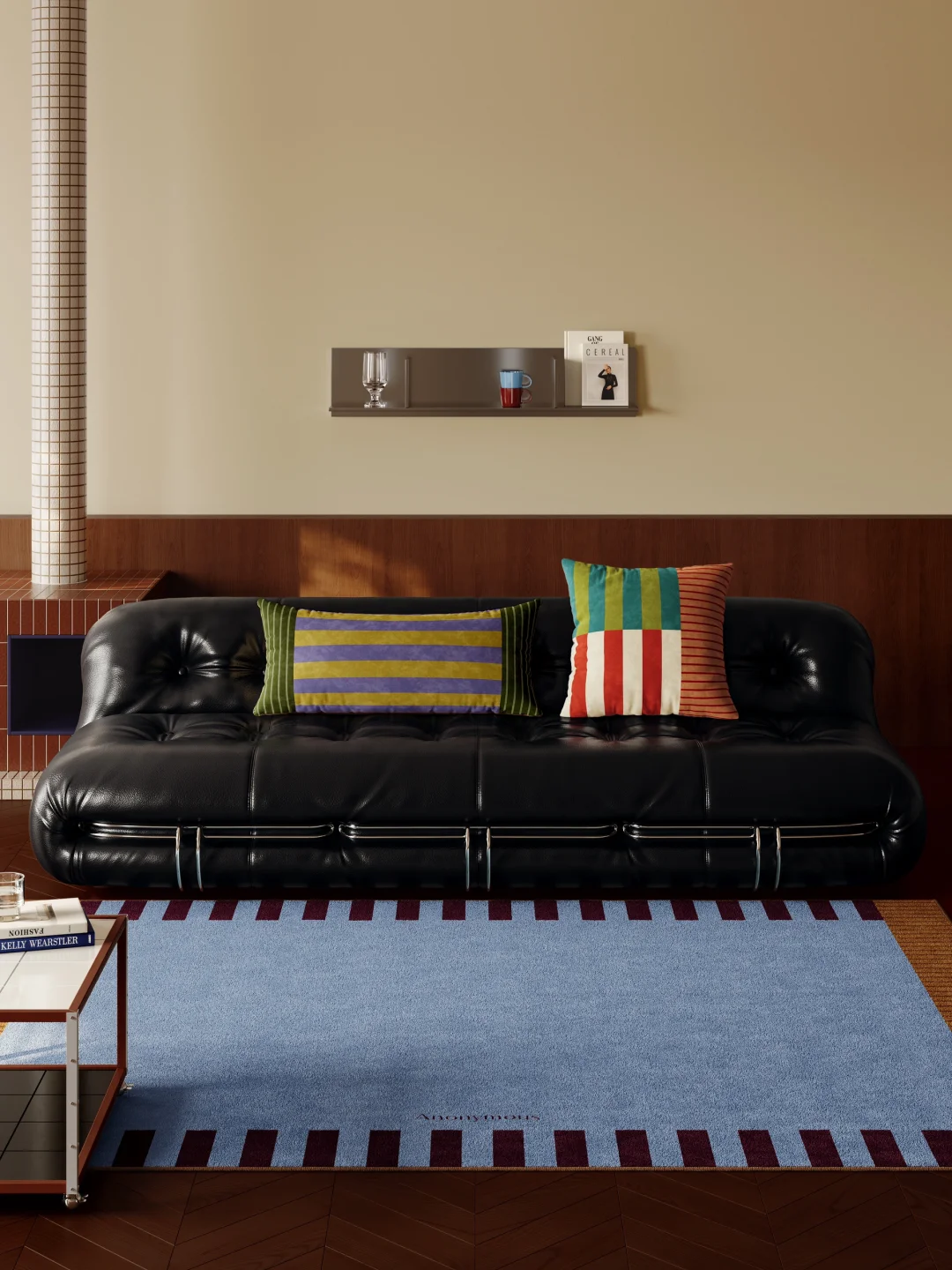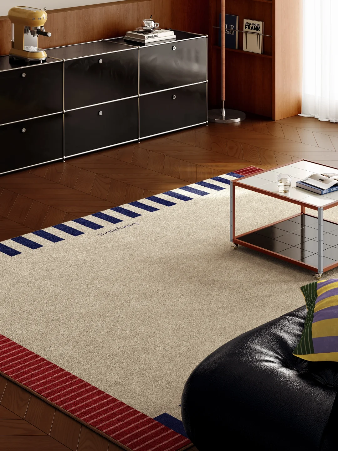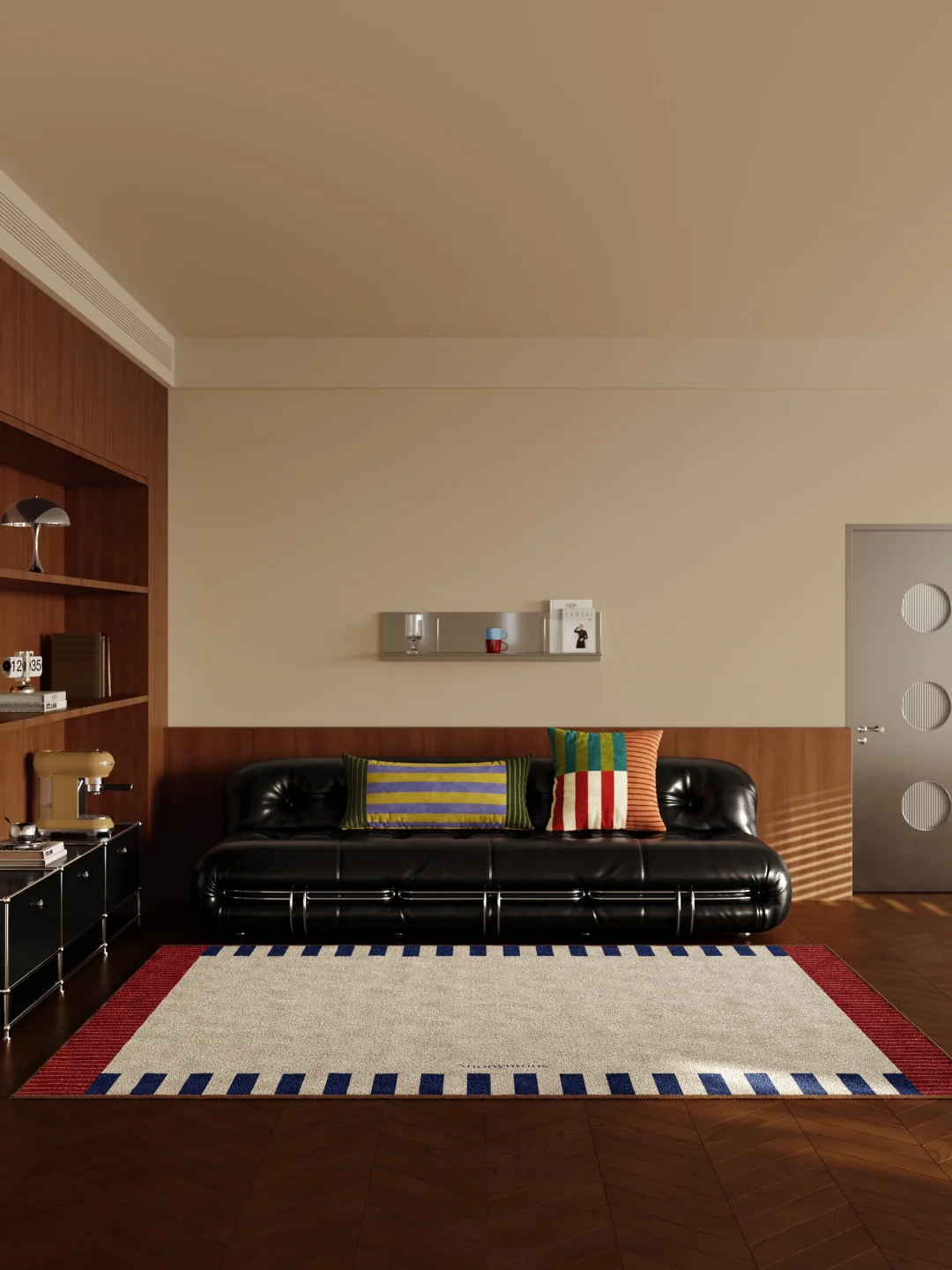 低饱和雾霾蓝打底 边缘斜纹撞色酒红与暖棕 循着包豪斯几何线条 把黄昏的松弛感编织成毯 色彩碰撞间 拼接出独属于中古客厅的艺术氛围 🔹 踩上去是绒绒的软 看过去是沉静的高级 🔹 让整个家的氛围感 在蓝调时刻里无限蔓延