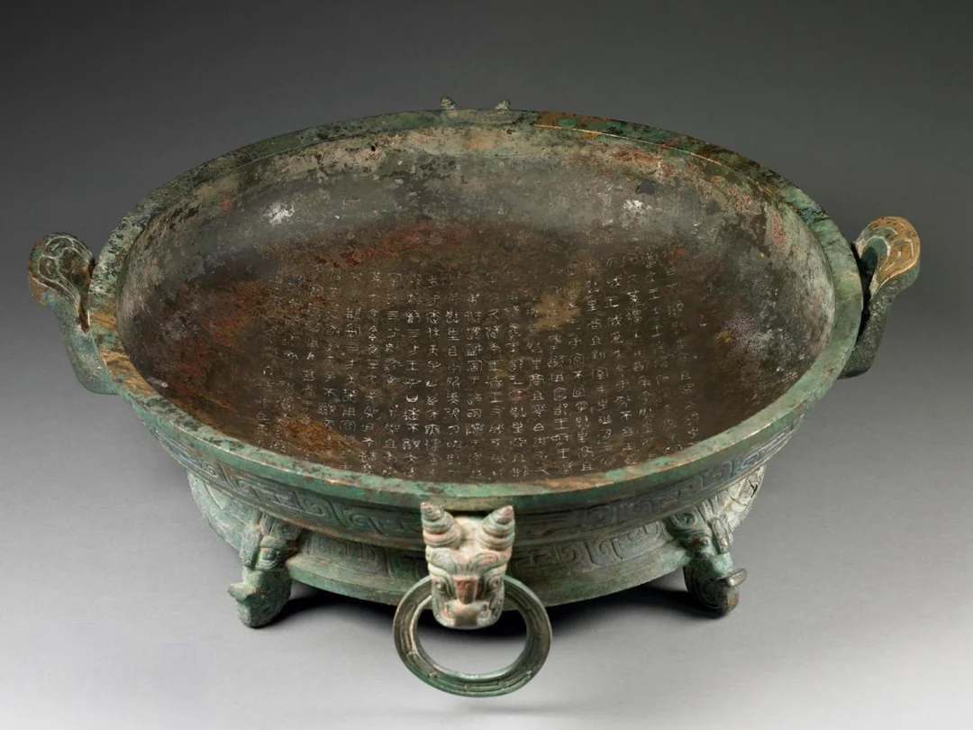2003年1月19日下午5点30分,眉县杨家村的五位村民在村子北坡取土时发现了一处西周窖藏,当即就向文物部门报告,随后文物部门对该窖藏进行连夜抢救发掘。经发掘共出土27件铜器,计有四十二年逨鼎2件、四十三年逨鼎10件、单叔鬲9件、单五父方壶2件和逨盘、逨盉、叔五父匜、天盂各1件,每件铜器均有铭文,总数达 4000 多字,根据铭文得知这个窖藏属于当时西周高级贵族单氏家族。此窖藏也被誉为“21世纪重大考古发现”,并入选2003年全国十大考古新发现。 今介绍逨盘: 逨盘 西周(公元前11世纪-公元前771年)尺寸:通高20.4厘米 口径53.6厘米 圈足直径41厘米 腹深10.4厘米 兽足高4.2厘米。 这件西周青铜逨盘,方唇,折沿、浅腹、附耳、铺首,圈足下附四兽足。腹及圈足装饰窃曲纹,辅首为兽衔环。盘内底铸铭文21行,约360字,记载了单氏家族8代人辅佐西周12位王(文王至宣王)征战、理政、管治林泽的历史。对西周王室变迁及年代世系有着明确的记载,可映证史书的记述。 释文: 逨曰:丕顯朕皇高祖單公,桓桓克明慎厥德,夾 召文王武王達殷,膺受天魯命,匍有四方,竝(普?) 宅厥堇疆土,用配上帝。雩朕皇高祖公叔,克逨 匹成王,成受大命,方狄(逖)不享,用奠四國萬邦。雩朕皇高祖新室中,克幽明厥心,柔遠能邇, 會召康王,方懷不廷。雩朕皇高祖惠中(猛?)父, 盭(戾)龢于政,有成于猷,用會昭王穆王,盜政四方,撲 伐楚荊。雩朕皇高祖零白,粦明厥心,不惰□ 服,用辟龏王懿王。雩朕皇亞祖懿中(設),諫諫克 匍保厥辟考(孝)王夷王,有成于周邦。雩朕皇考 龏叔,穆穆趩趩,龢詢(均)于政,明濟于德,享辟 厲王。逨 肇纘朕皇祖考服,虔夙夕,敬朕死事,肆天子 多賜逨休,天子其萬年無疆,耆(?)黃耈,保奠周 邦,諫乂四方。王若曰:逨,丕顯文武,膺受大命, 匍有四方,則繇唯乃先聖祖考夾召先王, 勞堇大命。今余唯經乃先聖祖考,申就乃令,令汝胥 榮兌,攝(?)司四方虞林,用宮御。賜汝赤巿、幽黃、 攸勒。逨敢對天子丕顯魯休揚,用作朕皇祖 考寳尊盤,用追享孝于前文人,前文人嚴在上,廙在 下,豐豐勃勃,降逨鲁多福,眉壽綽綰,授余康娛、純 右、通祿、永命、霝終,逨畯臣天子,子子孫孫永寳用享。