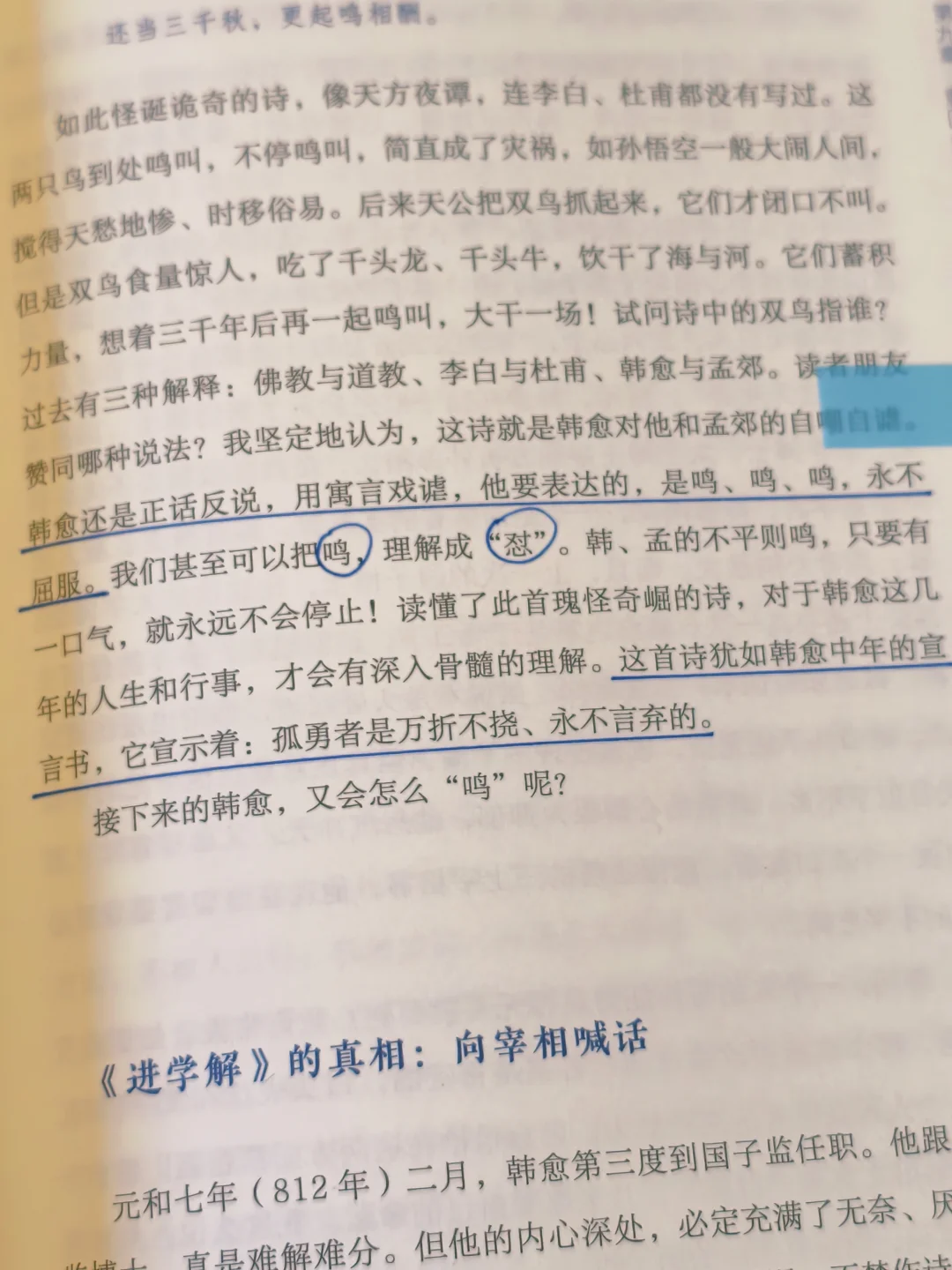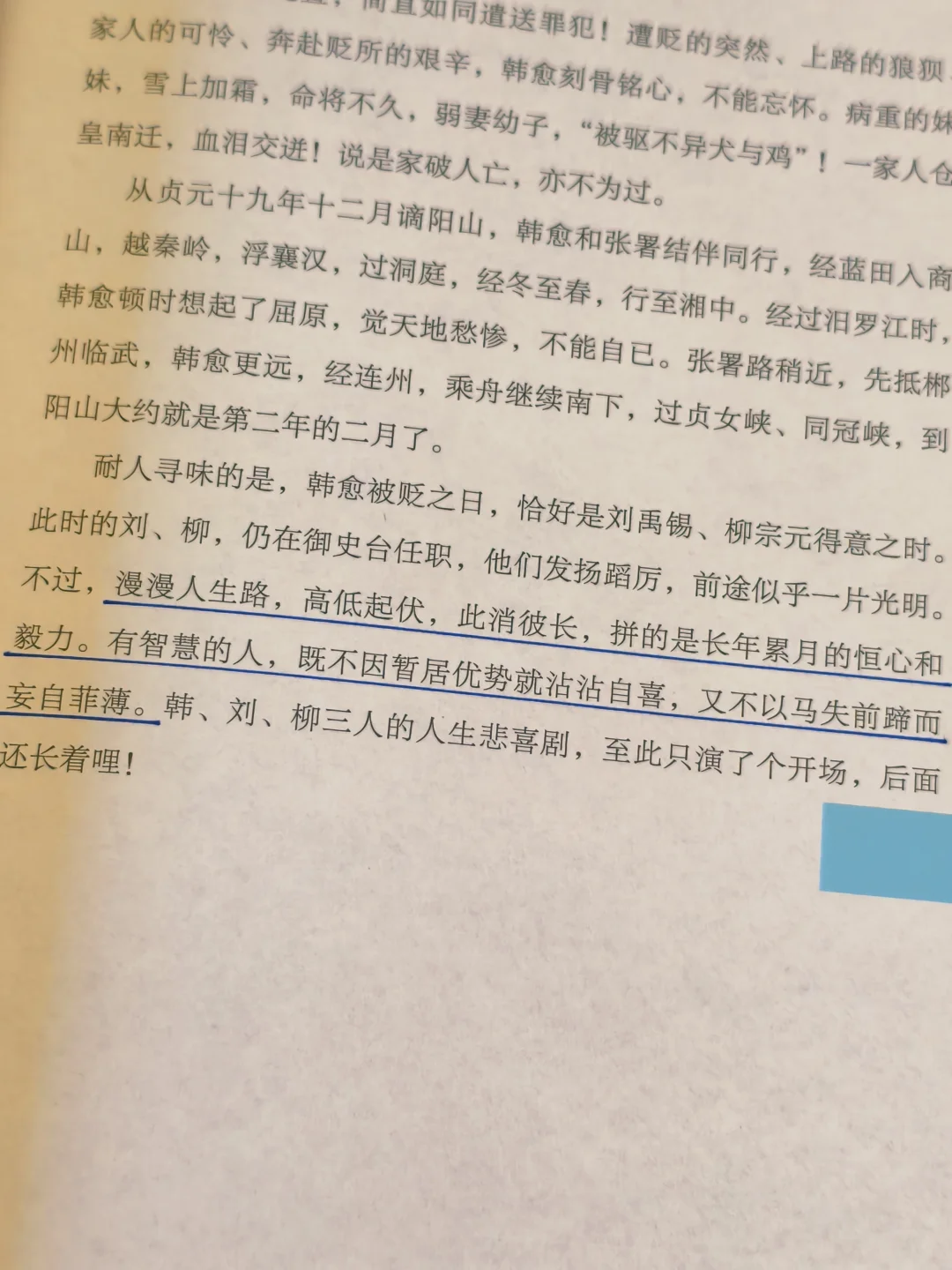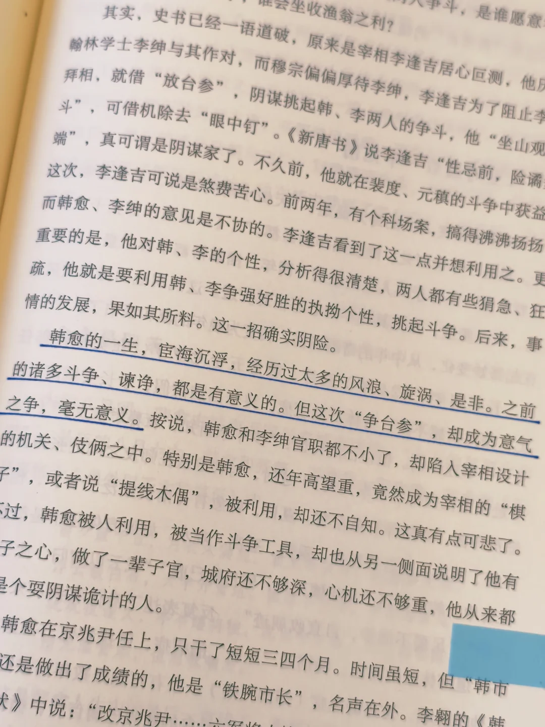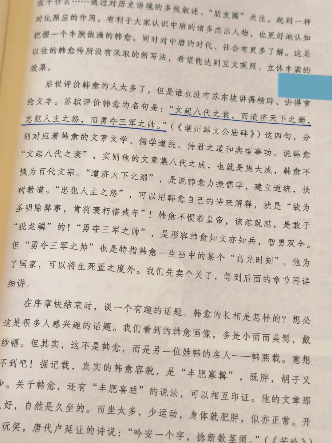 书中对比他与柳宗元、刘禹锡的抉择:有人向现实弯腰,有人被浪潮吞没,而韩愈始终以骨抗势,以文抗俗。他的“狂”,是对理想的赤诚;他的“怼”,是替万千沉默者发声!