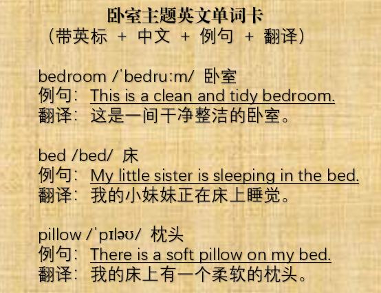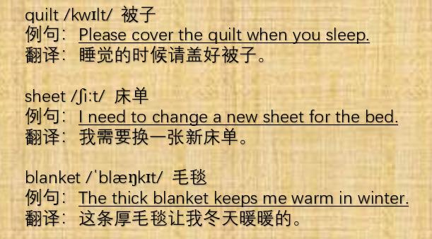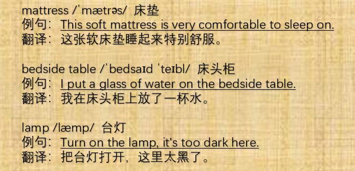 36岁 自学英语第2天。今天把卧室主题的英语都学完了,也帮大家整理出来了,希望对