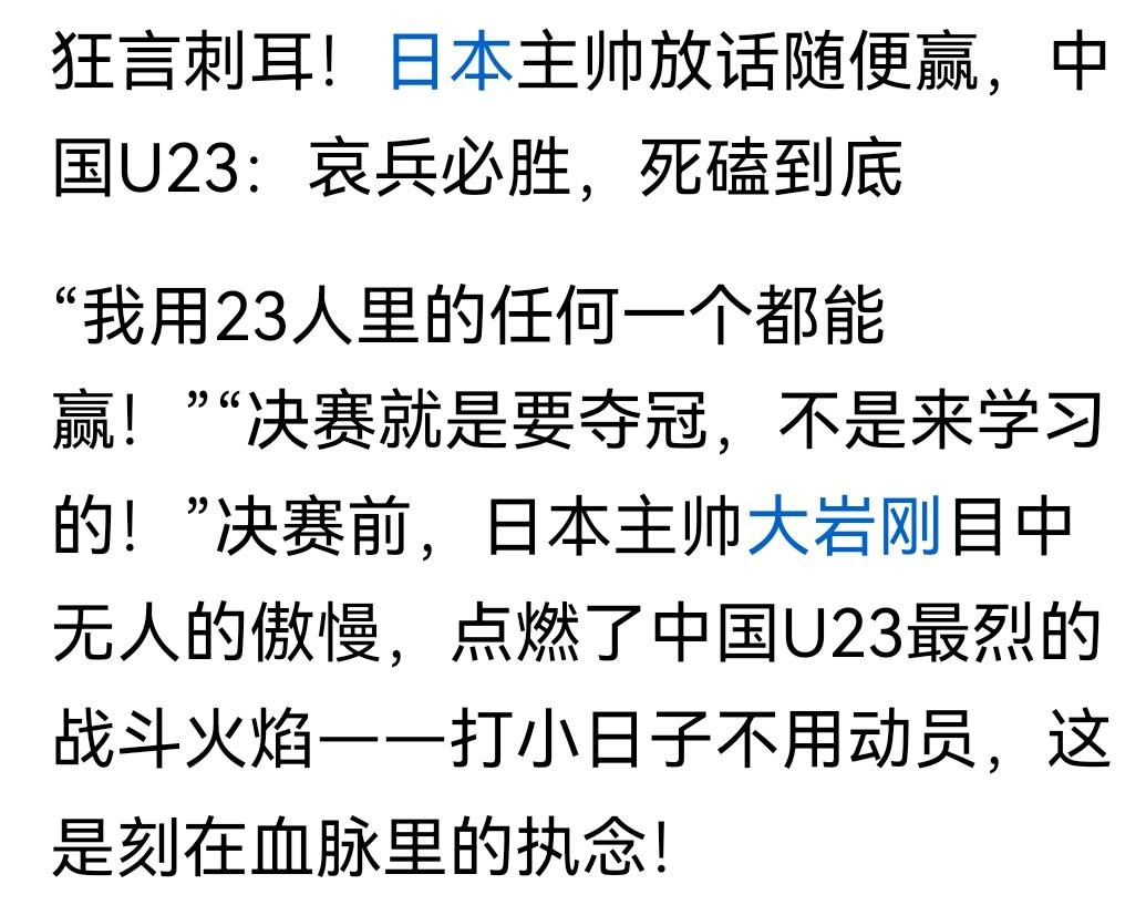 日本主教练这话一说U23国足夺冠基本稳了!只想说大岩刚你怕是喝高了,难道你不知道