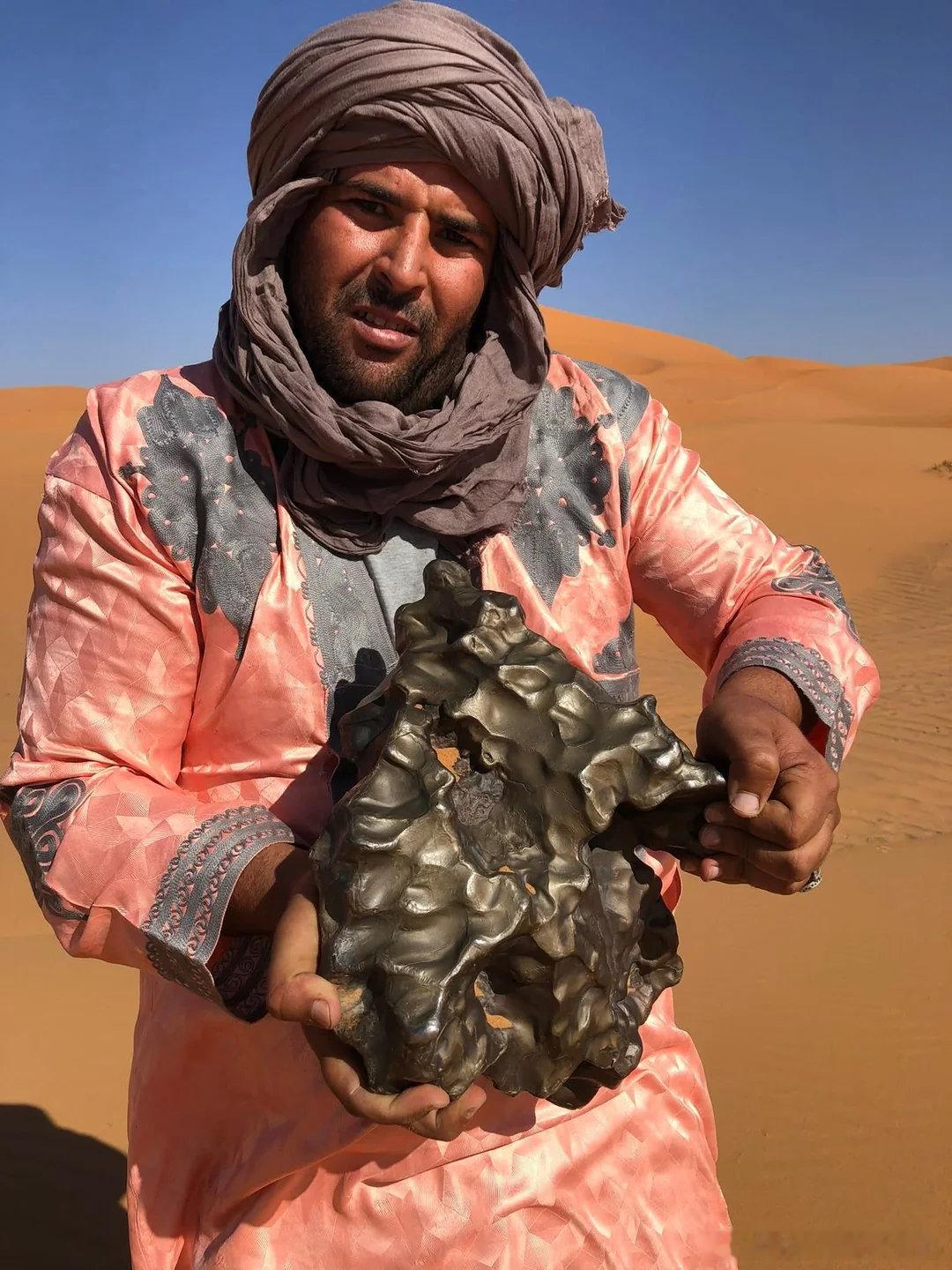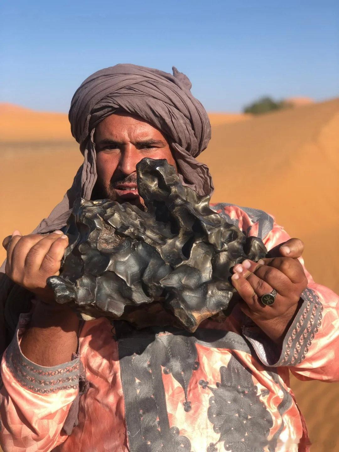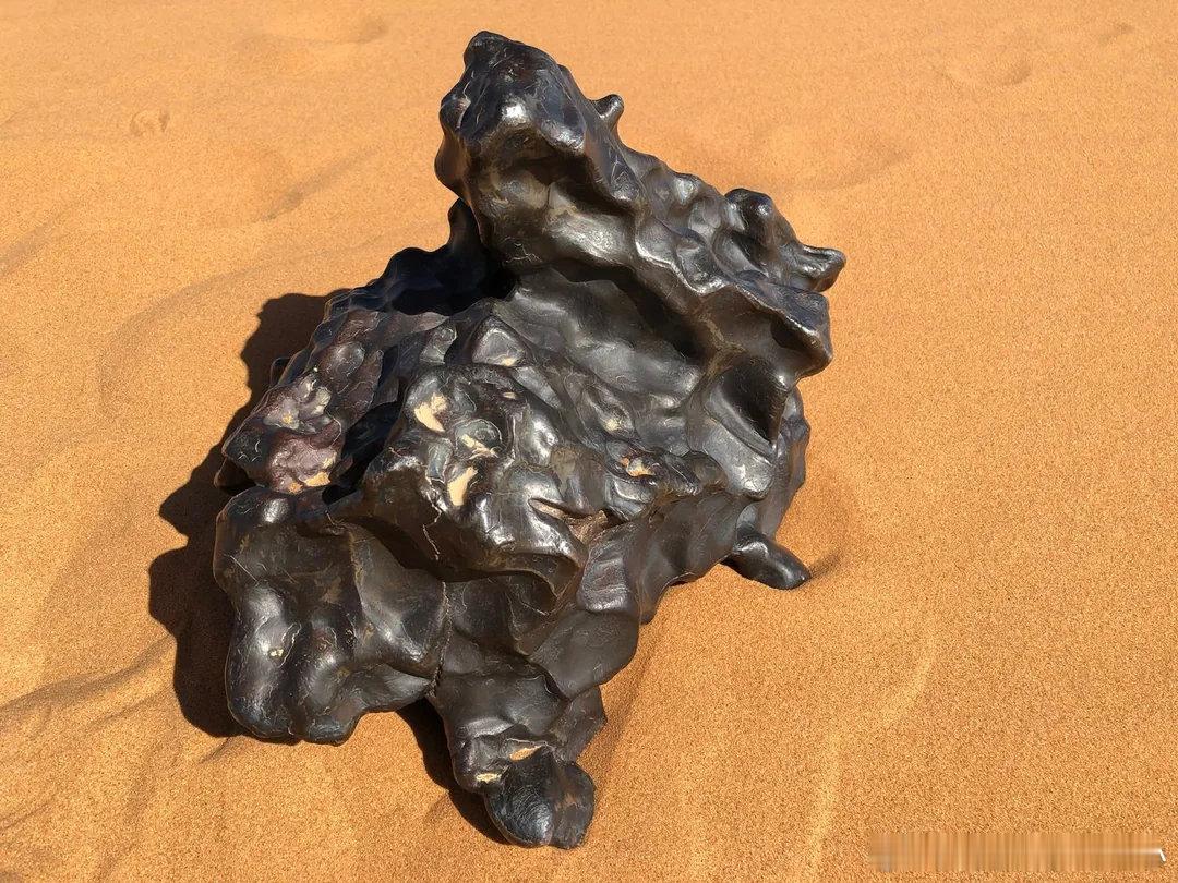 一块在沙漠中发现的铁陨石。它外表面的坑洼并非偶然形成,而是高速进入大气层时在极端高温与气流冲刷下产生的气动塑形结果。它表面的坑洼结构在陨石学中有一个专门术语:拇指印(也叫气印,regmaglypts)。铁陨石在穿越大气层过程中形成的特殊形态并非随机,而是由严苛的物理条件所决定。当它高速坠落时,表面因气动加热而熔融,形成一层金属液膜。这层液膜受到超音速气流及其产生的湍流涡旋的强烈剪切与重塑,导致差异烧蚀,从而雕刻出如气印、熔流线等具有典型特征的表面结构。这些结构记录了陨石与地球大气相互作用的流体动力学过程。正因如此,它呈现出一种看似无序、实则高度协调的天然美感——一种由流体动力学与材料物理共同雕刻出的宇宙级自然结构之美。烽火问鼎计划 飞扬军事