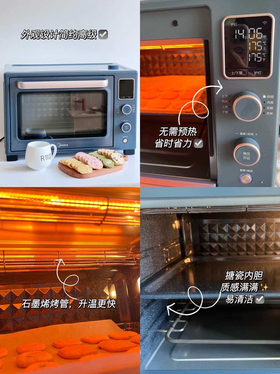 这次用到的是美的免预热烤箱 Q30,石墨烯烤管通电 0.2秒即热,无需预热,比普通烤箱烤制更省时~更有专利PID2.0控温技术,温度精准不翻车噢!而且清洁起来也很方便️