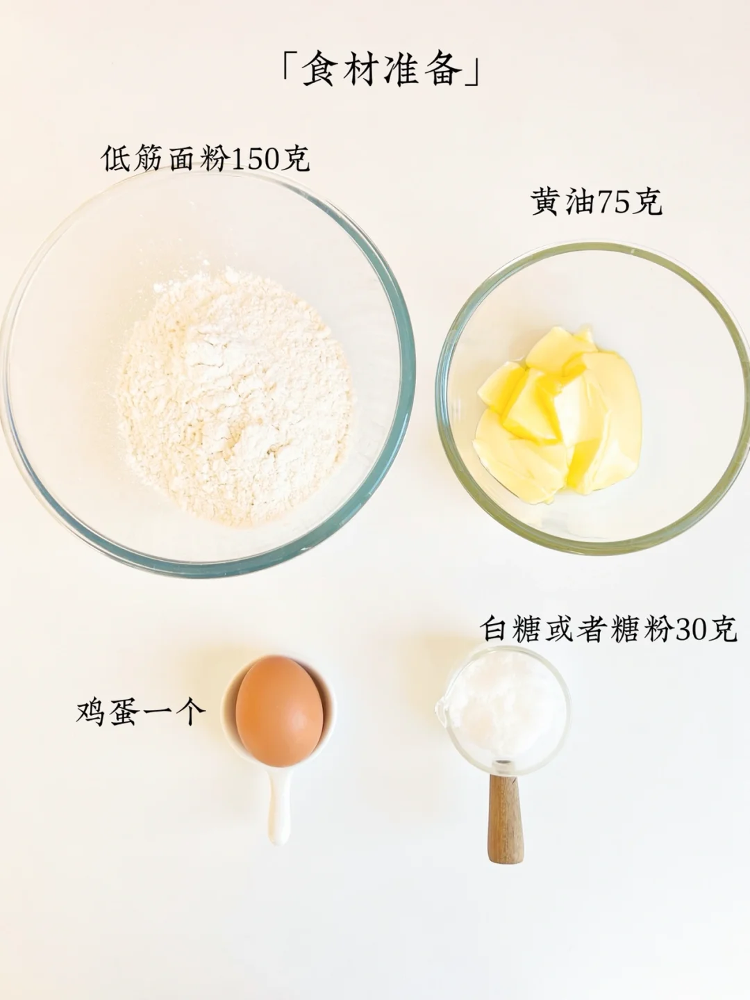 低筋面粉 150克、黄油75克、白糖或者糖粉30