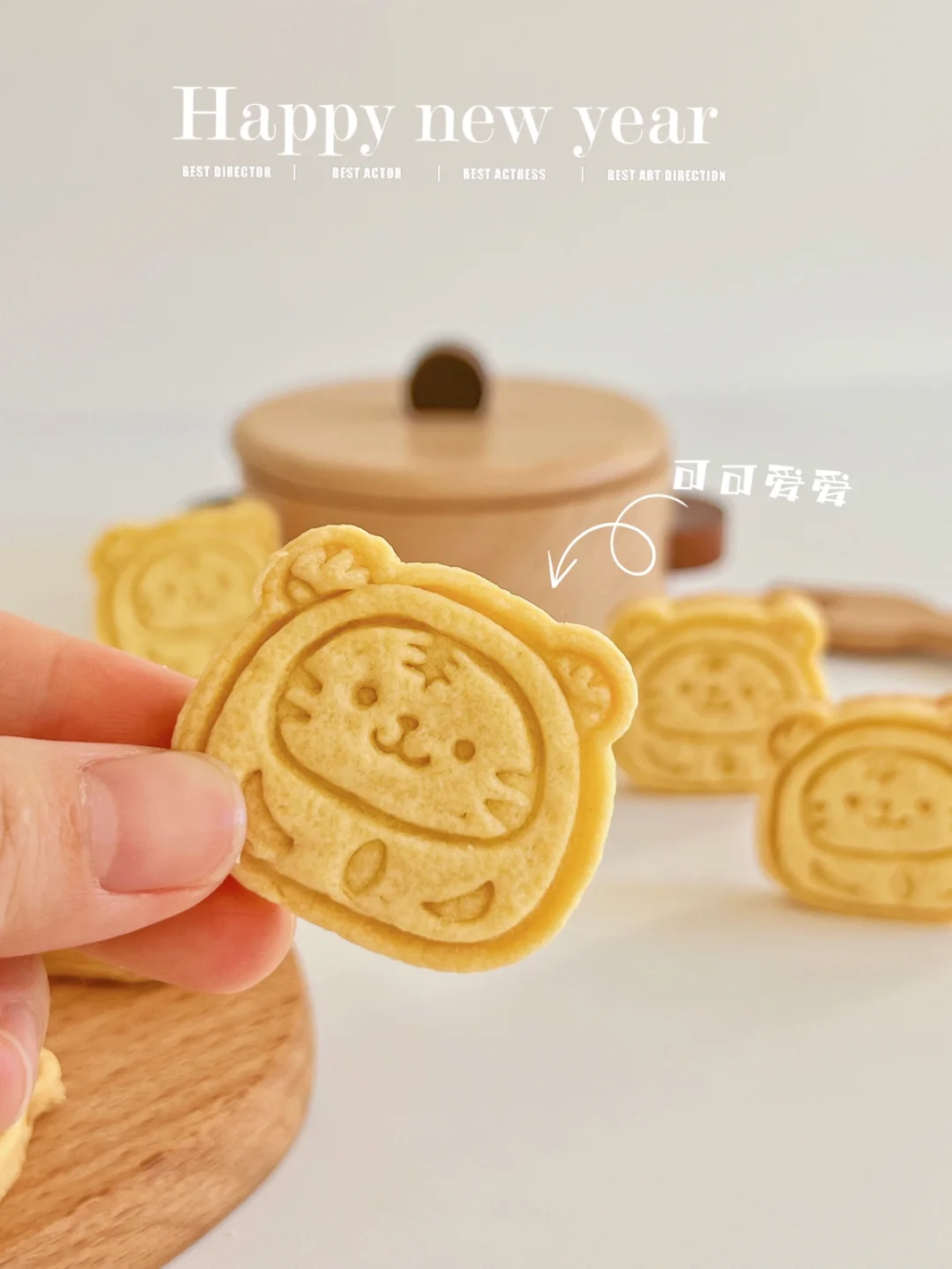 还有半个月就过年啦,这次安排了可可爱爱的卡通老虎小饼干,月亮小朋友宝宝开心的不行,胖嘟嘟的造型,操作也很简单,虽然出了点小插曲,因为我不小心把模具烫坏了,但是味道很赞哦!