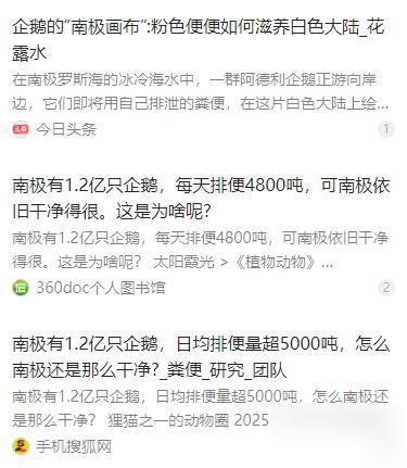 南极有1.2亿只企鹅,每天排便4800吨,可南极依旧干净得很。这是为啥呢?原来企鹅便便刚拉出,30秒就被冻成冰块。 说实话,1.2亿只企鹅每天忙着捕食磷虾,这排泄量相当于300辆渣土车在冰原上“卸货”。要是换个地方,估计早就是臭气熏天、粪堆成山了,但在南极,这里依然是全球最洁净的地区之一。 我感觉这主要归功于南极那个极端到极点的“瞬冷”环境。零下30℃的低温就像个天然急冻柜,还没等粪便里的细菌反应过来,甚至没等它渗透进冰层,一切就都在30秒内固化成了硬邦邦的小冰块,臭味根本散发不出来。 最戳我的一点是南极那种“暴力清扫”模式。南极的下降风最高能达到100公里时速,简直是台风级别的。这些冻结的粪便被大风吹得脱水、风化,碎成轻飘飘的粉末四处飞散。这哪是拉屎啊,这分明是在给冰原增加“粉色涂层”。 有个细节特别有意思:这些从太空都能看到的粉红斑痕,竟然是科学家的“导航仪”。他们不用实地去钻冰窝子,直接盯着卫星云图上的粪便痕迹,就能精准锁定几万只企鹅的栖息地。这大概是生物界最硬核的科研定位系统了。 然后更绝的是,这些排泄物居然还是南极的“降温神器”。粪便分解出的氨气能促成气溶胶颗粒的产生,从而形成云层来反射阳光。想到企鹅拉个屎都能帮地球抵抗变暖,这生态闭环逻辑确实有点超前。 最后剩下的那点“产出”,基本都被夏天的融雪和涨潮的海浪给包圆了。富含氮磷铁的便便冲进海里,1克就能喂饱100万只硅藻。硅藻养磷虾,磷虾养企鹅,这种“我喂我自己”的完美大循环,真的只有在南极这种纯净的地方才能转得这么溜。 说白了,南极能保持干净,靠的不是谁去打扫,而是自然界把“废物”玩成了最顶级的资源。只要这个自然的循环系统不被干扰,这份纯净就一直会在。