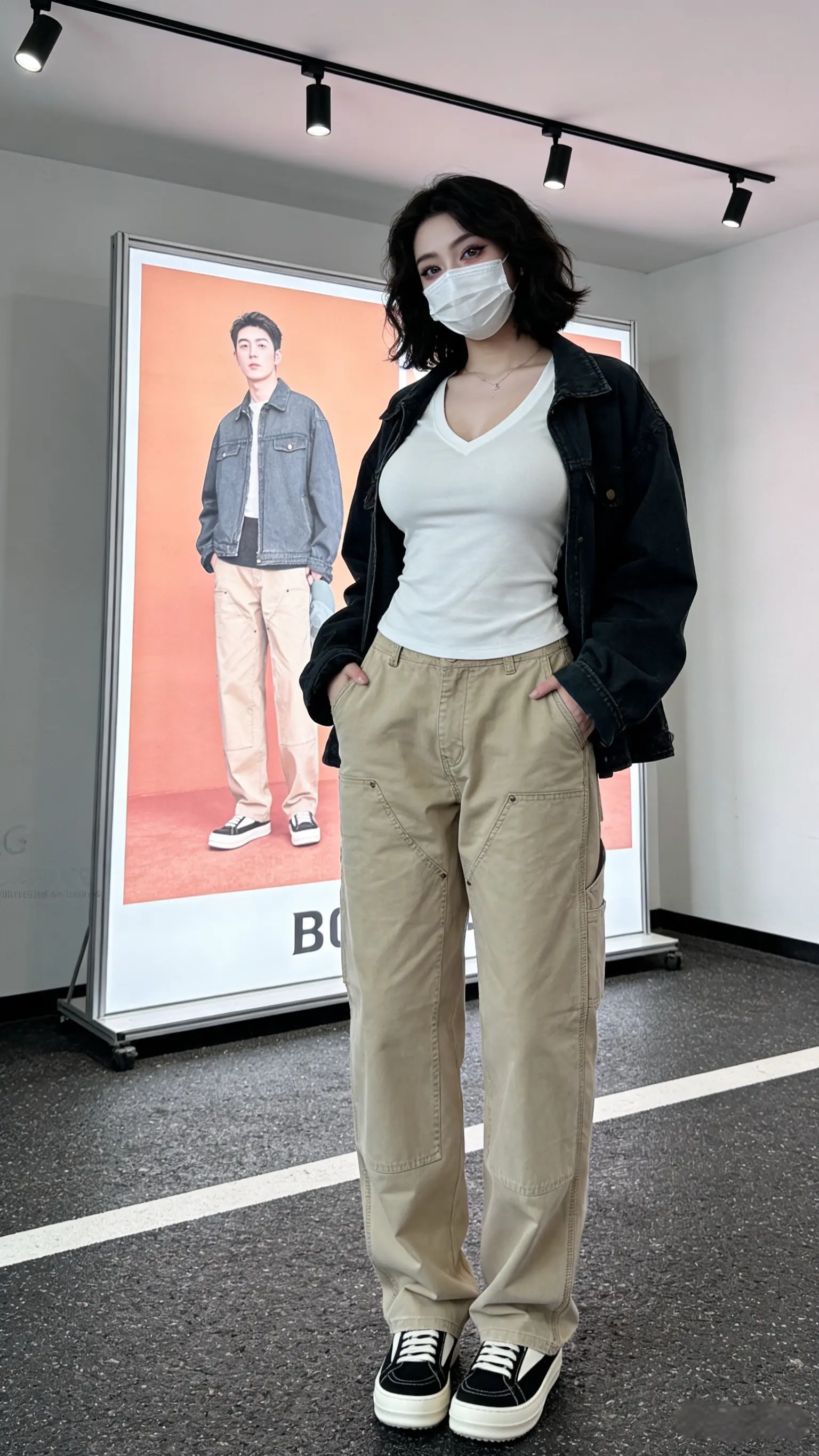 Entong美式复古休闲工装裤男生潮流痞帅直筒伐木裤子宽松牛仔裤男