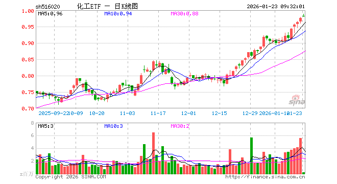 1月23日,化工ETF(516020)开盘涨0.72%,报0.982元。化工ETF(516020)重仓股方面,万华化学开盘涨0.40%,盐湖股份涨1.11%,藏格矿业涨1.19%,天赐材料涨0.07%,巨化股份跌0.67%,恒力石化涨2.00%,华鲁恒升涨0.08%,宝丰能源涨0.68%,云天化涨0.00%,金发科技涨0.05%。