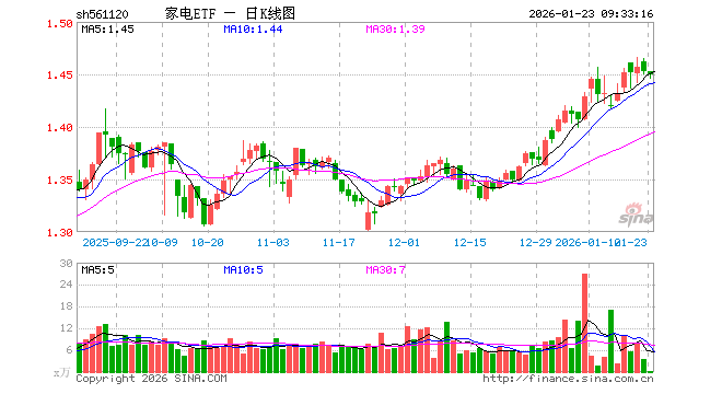 家电ETF(561120)业绩比较基准为中证全指家用电器指数收益率,管理人为富国基金管理有限公司,基金经理为牛志冬,成立(2022-01-25)以来回报为45.34%,近一个月回报为7.03%。