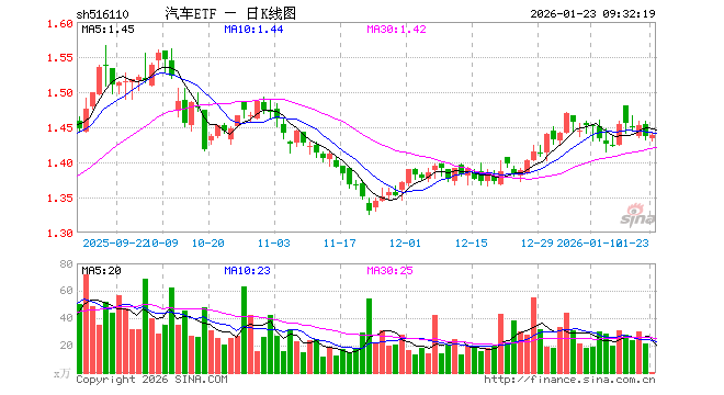 1月23日,汽车ETF(516110)开盘跌0.14%,报1.434元。汽车ETF(516110)重仓股方面,比亚迪开盘涨0.13%,福耀玻璃涨0.20%,赛力斯跌0.06%,上汽集团涨0.00%,拓普集团涨0.56%,长安汽车涨0.00%,宇通客车涨0.16%,赛轮轮胎跌0.30%,德赛西威涨0.55%,银轮股份跌0.12%。