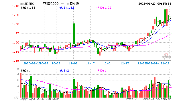 1月23日,中证2000ETF增强(159556)开盘涨0.53%,报1.339元。中证2000ETF增强(159556)重仓股方面,鑫科材料开盘跌0.24%,神剑股份涨0.69%,精工钢构涨0.00%,华联控股涨1.47%,三维通信涨1.82%,天汽模涨0.00%,东方电热涨0.00%,青松建化涨0.00%,北京利尔涨0.34%,嘉元科技跌0.39%。