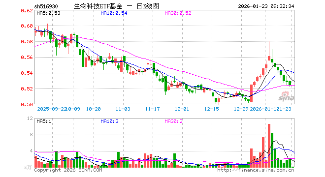 生物科技ETF基金(516930)业绩比较基准为中证生物科技主题指数收益率,管理人为民生加银基金管理有限公司,基金经理为周帅,成立(2021-08-05)以来回报为-47.56%,近一个月回报为2.42%。