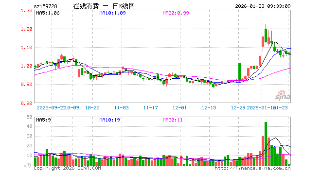 1月23日,在线消费ETF南方(159728)开盘涨0.85%,报1.070元。在线消费ETF南方(159728)重仓股方面,科大讯飞开盘涨0.96%,歌尔股份涨0.52%,巨人网络涨0.93%,蓝色光标涨2.57%,恺英网络涨0.12%,昆仑万维涨0.80%,拓维信息跌0.54%,三七互娱涨1.60%,安克创新跌0.16%,光线传媒涨0.41%。