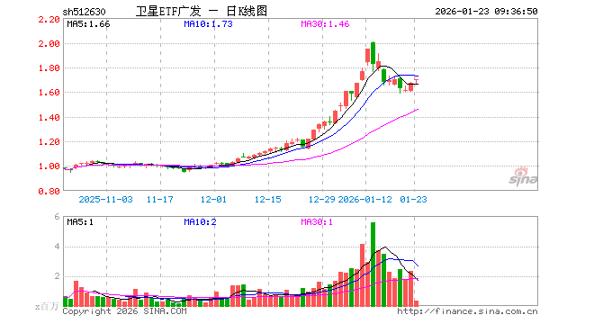 卫星ETF广发(512630)业绩比较基准为中证卫星产业指数收益率,管理人为广发基金管理有限公司,基金经理为吕鑫,成立(2025-10-13)以来回报为66.75%,近一个月回报为38.34%。