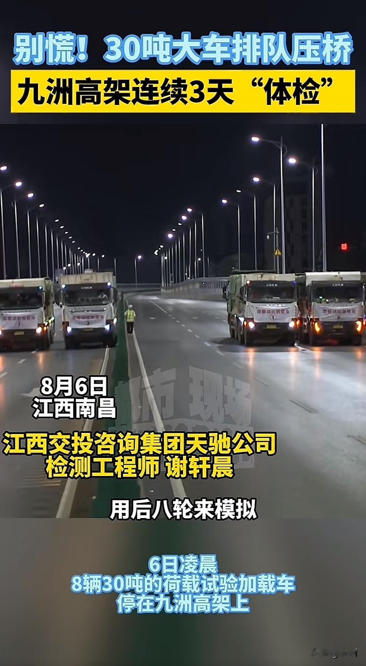 最近南昌九洲高架有点忙!8月6日到8日凌晨0点到6点,抚河南路到井冈山大道这段要全封闭做“体检”。为啥呢?原来这座2015年通车的高架桥每天车流量大,检测人员要在凌晨用专业设备测测桥的“筋骨”,看看承不承受得住这么多车来车往。 好多司机可能要问:封路了咋走?官方给了绕行方案:东西向的车可以从匝道下到地面,走何坊西路辅道绕一圈再上桥。地面的车也能走辅道,但得留意指示牌。南昌交警特意提醒,违反规定会被处罚,大家别冒险。 这事其实挺值得点赞的。现在大城市高架桥越来越多,定期检测就像给人做体检,早发现问题早解决,比出了事故再修强多了。南昌选在凌晨施工,尽量不影响白天通勤,还通过官网、媒体、12345热线多渠道通知,看得出是在用心平衡安全和便民。 不过也有人可能觉得麻烦:三天都得绕路,会不会耽误时间?其实想想,每次检测都是为了以后更安全地通行。就像南京、太原这些城市,定期给桥梁做“深度体检”,用高科技设备查裂缝、测钢筋,就是为了让老百姓放心过桥。南昌这次检测虽然短期影响交通,但长期看是对城市安全负责。 大家最近走这段路的话,提前用导航看看实时路况,或者错峰出门。要是有急事,还能打南昌交警电话问问。城市管理就像搭积木,每块“积木”都得稳稳当当,咱们出行才能更安心。你说是不是这个理?