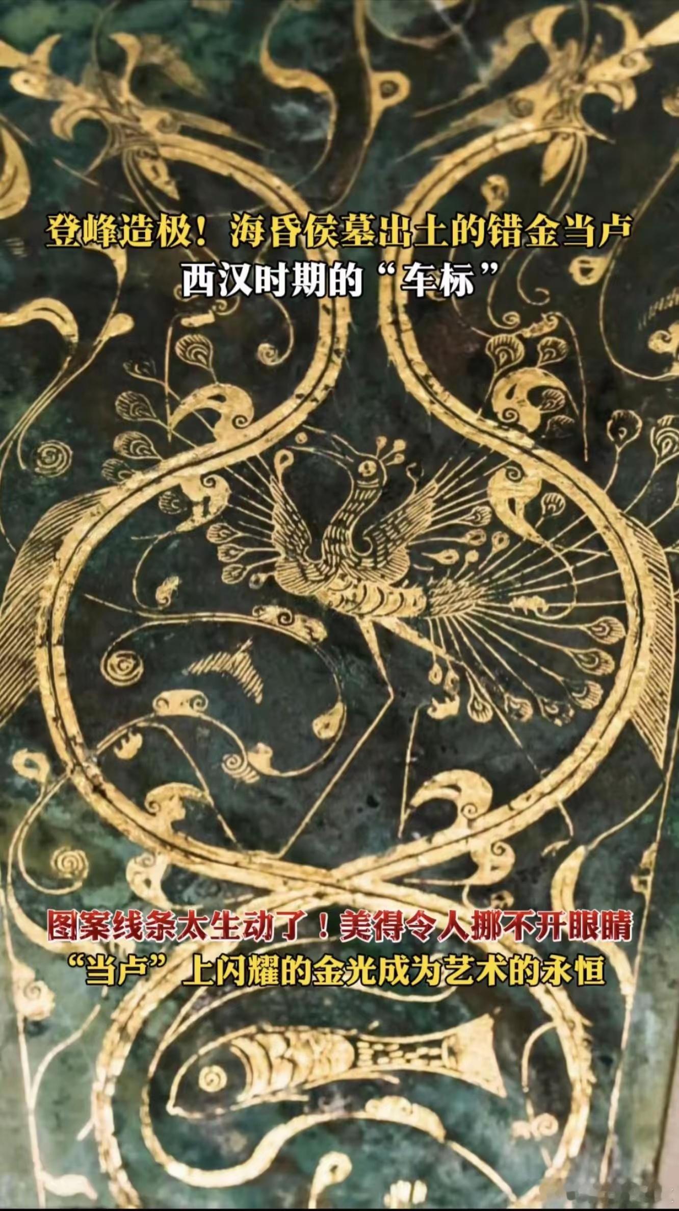 海昏侯墓出土的日月四神纹错金青铜当卢,真正的皇家设计。我们的老祖宗,审美真是高级