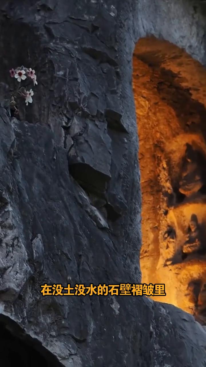 原来小说里写的佛前生花,福泽自来是真的! 谁能想到在洛阳龙门石窟的石缝里竟生出了一朵美丽的地黄花。在没土没水的石壁褶皱里靠着石窟的潮气生生撑了半年,身旁就是默然矗立的千年佛像。花瓣虽娇却带着股韧劲。佛龛生花,百年一遇,通常被视为祥瑞之兆,是好运里否极泰来,绝境逢生的象征。 希望看见这朵石缝幸运花的人今年都能像它一样在难走的路上也能开出自己的光。