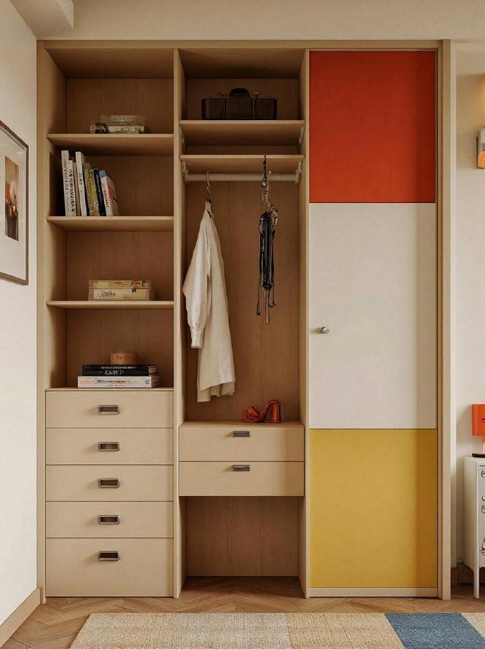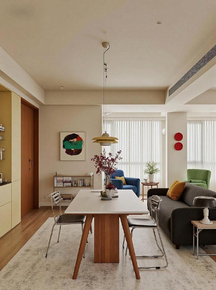 红蓝黄撞色,点亮冷静混凝土120㎡包豪斯|现代风设计