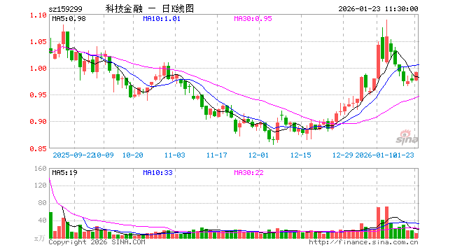 1月23日,截止午间收盘,金融科技ETF易方达(159299)涨1.54%,报0.991元,成交额1040.28万元。金融科技ETF易方达(159299)重仓股方面,东方财富截止午盘涨0.17%,同花顺涨3.01%,指南针涨1.01%,恒生电子涨1.30%,润和软件涨1.98%,东华软件涨0.80%,新大陆涨0.00%,广电运通涨0.52%,银之杰涨0.29%,四方精创涨1.83%。