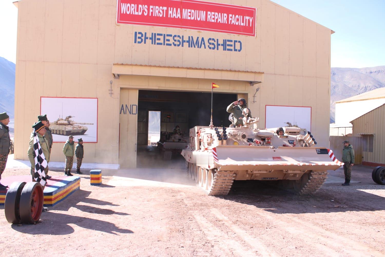 印度炮兵与装甲兵部队司令哈伊特什·巴拉少将视察了驻扎在阿达克地区的印度陆军第254独立装甲旅(代号"雪豹旅"),特别检查了印军在此地新建立的“世界第一”的超高海拔地区装甲中修设施。