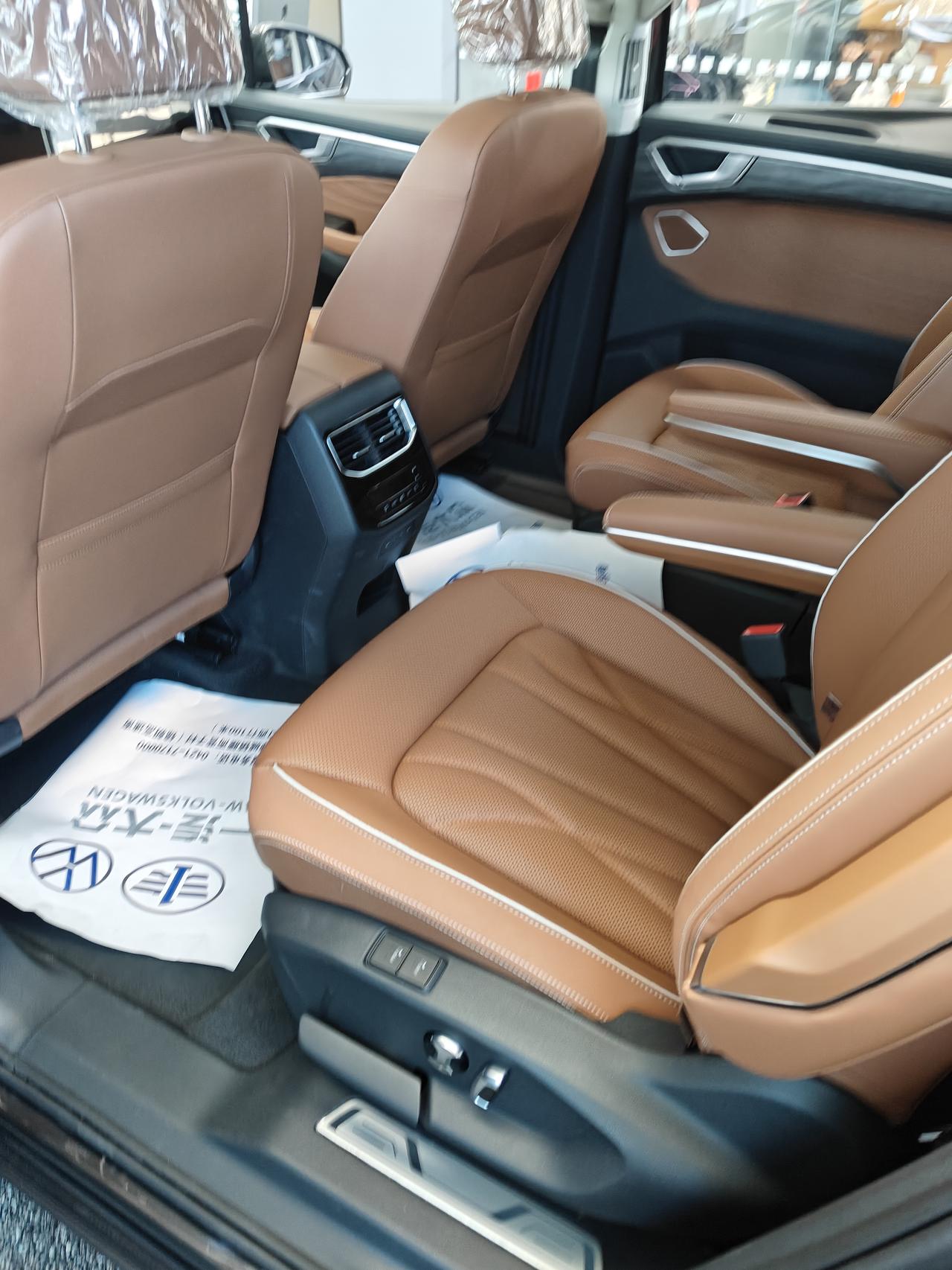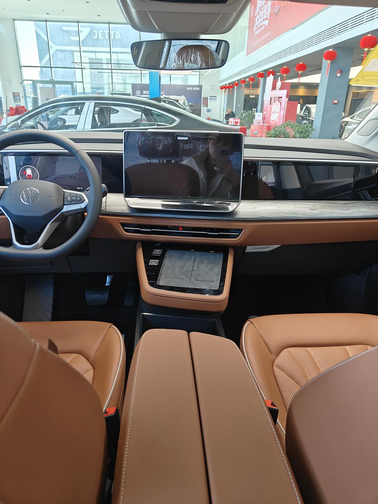 大众揽镜是为数不多的能坐的下的六座SUV,也是展厅里最大的一台车。里里外外体验了