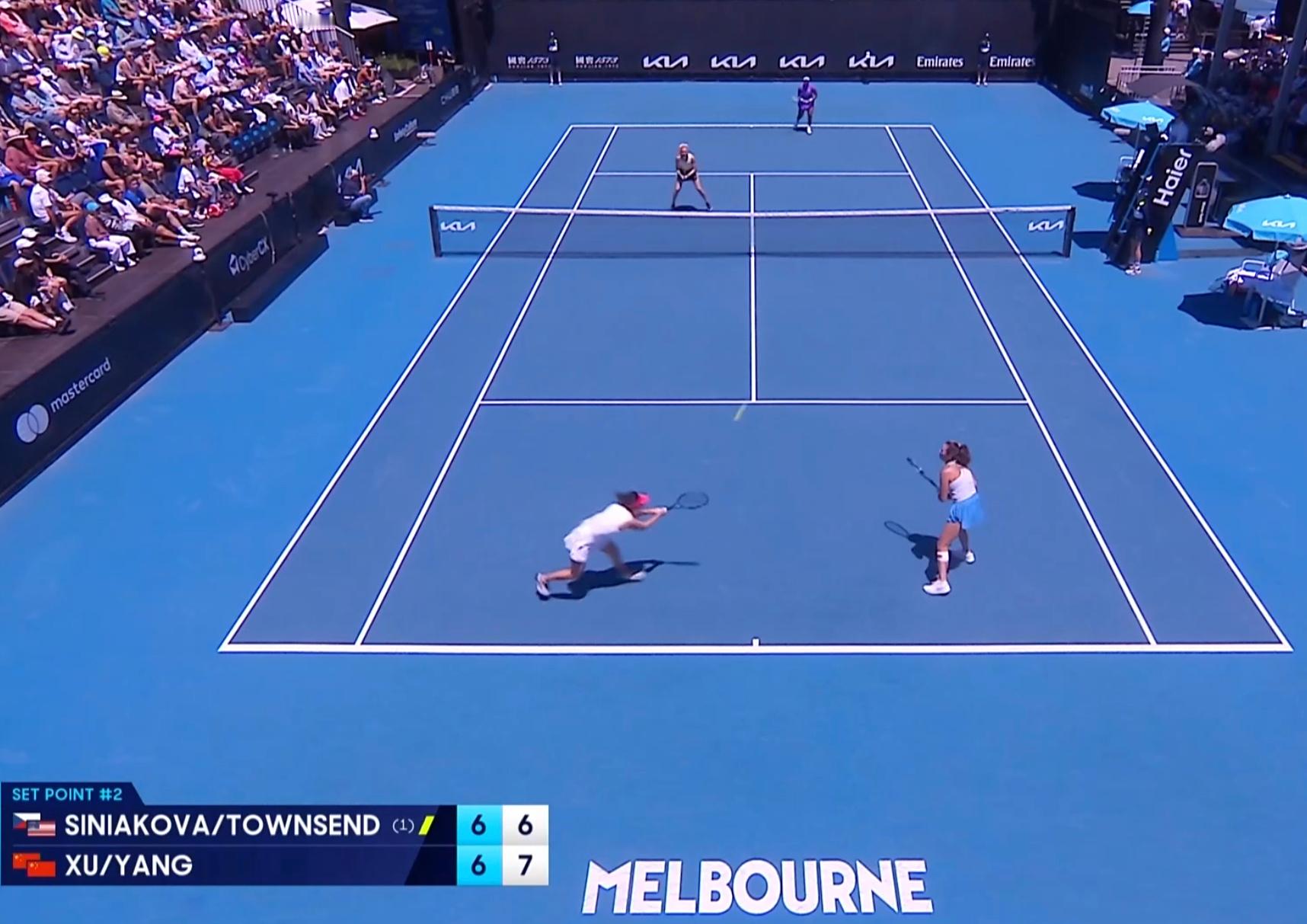 澳网女双第二轮,徐一璠/杨钊煊首盘错失两个盘点,6-7(7)/1-6不敌头号种子