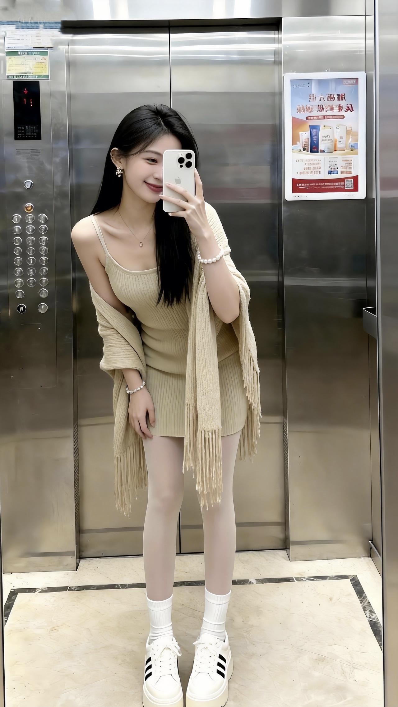 甜妹穿搭 甜系女孩已上线 温柔甜美 电梯拍照姿势 大长腿