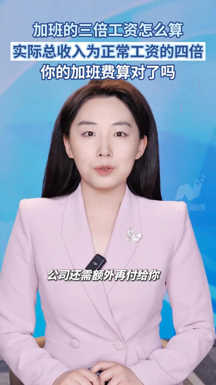 加班的三倍工资怎么算?实际总收入为正常工资的四倍,你的加班费算对了吗? 康一冉,主持人。 加班的三倍工资到底是加上当天日薪再额外给三倍,还是不加原有日薪只给三倍?据劳动法规定,公司安排你在法定节假日工作,应另外支付给你日工资标准百分之三百的工资。简单来说,如果这天你上班了,除了当天本该有的工资外,公司还需额外再付给你三倍的工资,实际总收入为正常工资的四倍,这才算是真正的三倍。 算明白这笔账才能理直气壮的维护自己的权益,你的加班费算对了吗?