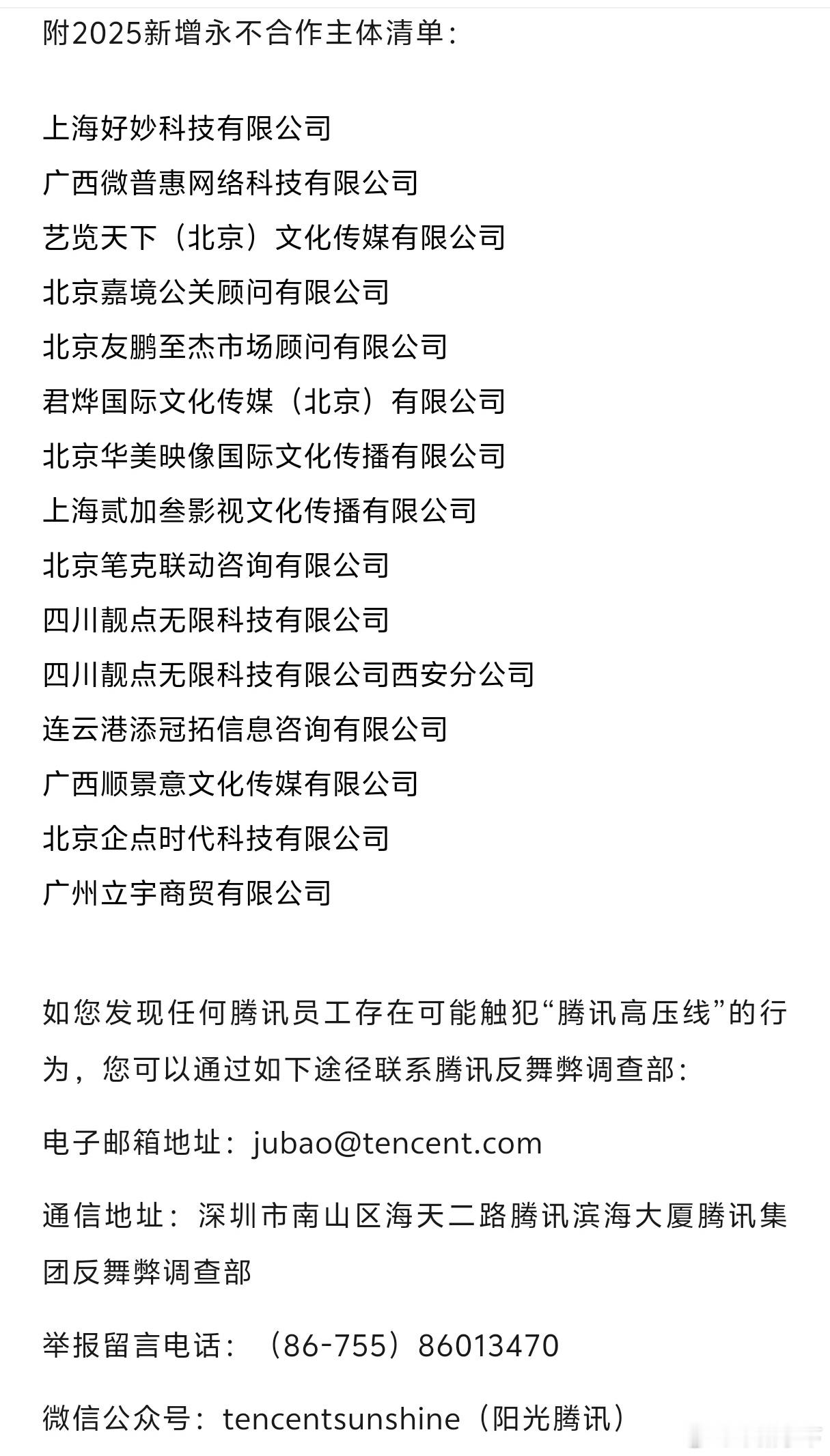 这是腾讯反舞弊的完整版,除了一堆内部高层被处理外,还有好多永不合作主体清单,腾子