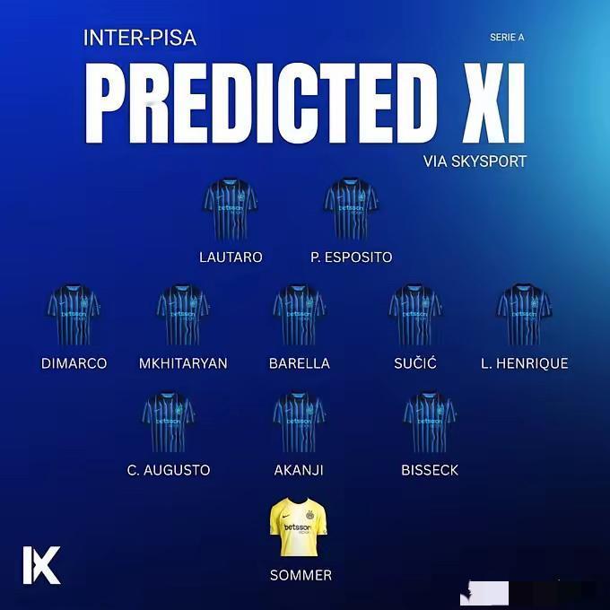 生产队的驴也不能这么用呀!意甲第22轮国际米兰主场迎战比萨,国际米兰排名积分榜第一,而比萨深陷降级区排在倒数第二,这应该是一场强弱分明的比赛。 刚从欧冠铩羽而归的国际米兰本场比赛轮换幅度并不大。拖后中卫阿坎吉继续首发,这可是未曾休息一分的球员啊,真是死操到底了,对阵弱旅确实有理由和有条件让阿坎吉休息呢。奥古斯托替代巴斯托尼出任左中卫,话说最近巴斯托尼轮休的有些多,或许是最近状态不佳的缘故吧。周中轮休的比塞克重回首发担任右中卫。巴雷拉出任后腰位置,巴雷拉最近状态也一般,失误颇多,是否可以轮休调整下呢。姆希塔良回归首发任左中卫,苏西奇凭借欧冠的出色表现继续首发右中卫,右翼卫实在没人恩里克只能继续首发。劳塔罗和皮奥组成锋线。 虽说对手较弱,但万不可轻敌,全力取得3分,继续巩固榜首。
