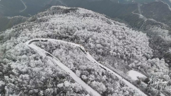 还有游客直播昨天22日的实况:百丈岭山顶雾凇基本化完了,只有背阴面还有。今日的百丈岭并不会很惊艳,也完全没有必要在人流量最多的时候来。