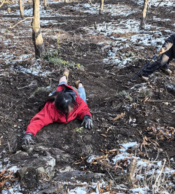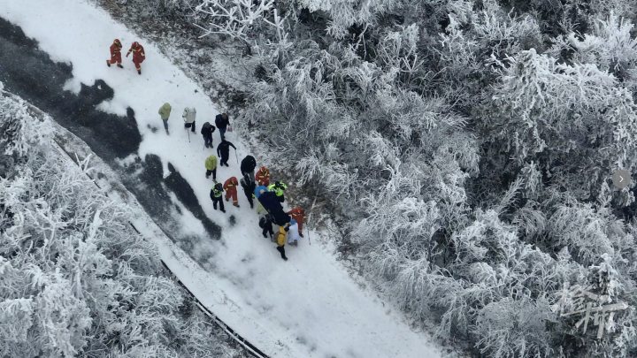 受寒潮影响,乌龙山积雪厚度超20厘米,部分路段冰层厚达数厘米,山路坡度超30度,救援车辆根本无法通行。更棘手的是,低温导致雾气严重,给定位受困者带来极大挑战。