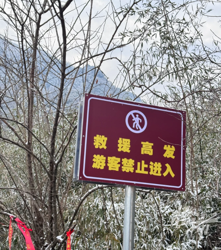 昨天,百丈岭的冰雪在慢慢消融,沈队长说,这样的冰雪消融天气,爬山其实是最危险的,极容易被困住。