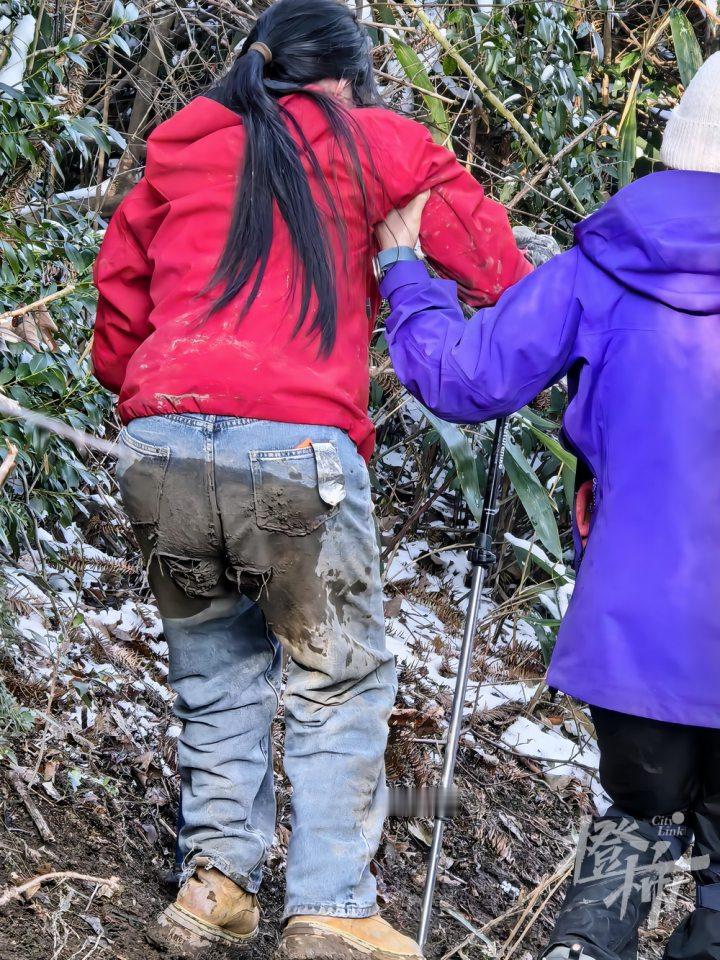 被困者累得身体瘫软,救援人员搀扶着他们下山。
