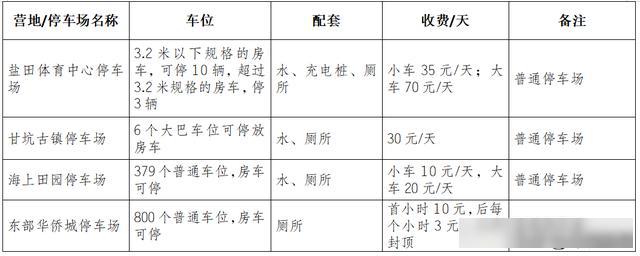 根据服务内容不同,每辆房车每天的停放价格分别从20元到600元不等。