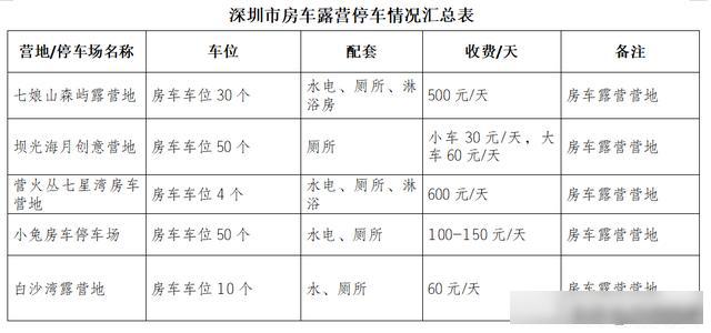 目前,深圳全市公园停车场不提供房车停放服务。