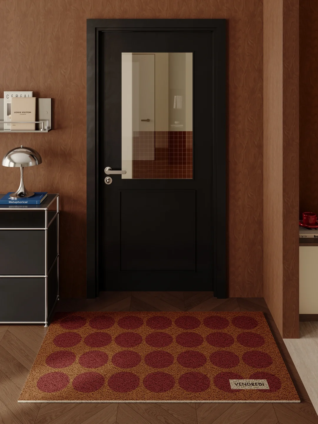 秋冬松弛感直接拉满 —— 复古绿 + 深棕底波点 把法式老电影的氛围感直接铺在玄关🎬 绿是自带滤镜的复古湖水绿 像从 60 年代画报里抠出来的色调 往门口一铺,摩登复古感max