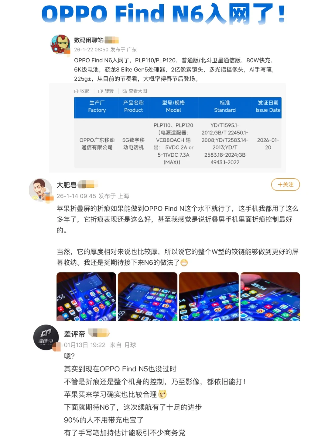 今年首款全能大折叠,骁龙8EliteGen5、6000mAh、2亿像素、多光谱镜头、AI手写笔等等。之前传闻苹果买了Find N5回去研究发现自己的折痕控制不如N5。