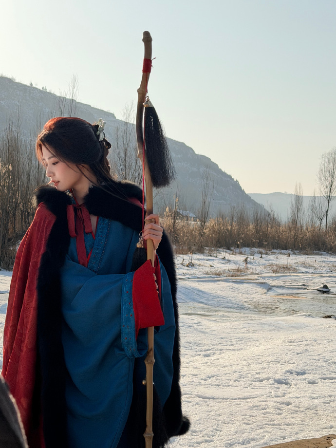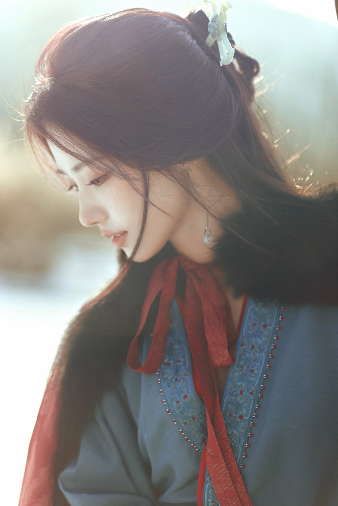 卢昱晓战国袍造型大片卢昱晓的战国袍造型大片氛围感拉满!一袭交领右衽、缀有朱红菱纹暗绣的宽袍大袖,搭配简约玉簪束起的发髻,完美复刻先秦古韵;清透淡雅的伪素颜妆面,再加上雨天湿发的清冷破碎感,让她宛如从故城烟雨中走来的古典佳人,举手投足间尽展华夏衣冠的风骨与韵味。