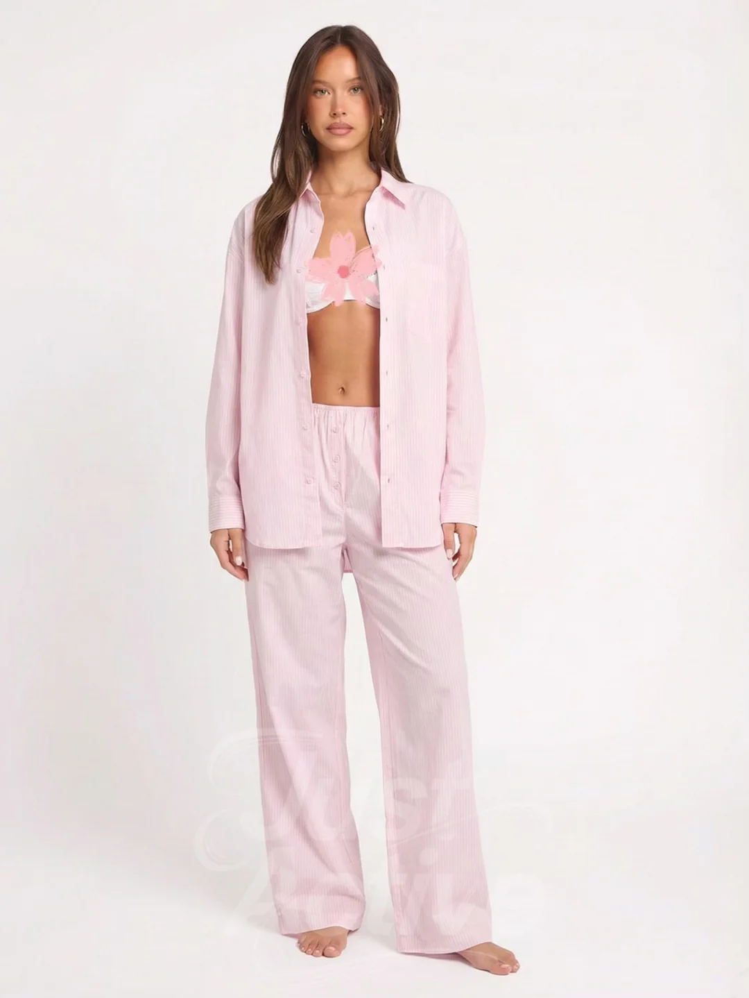 云感面料 粉色条纹 穿了都不想脱下 不费力精致~美式甜心自由自在