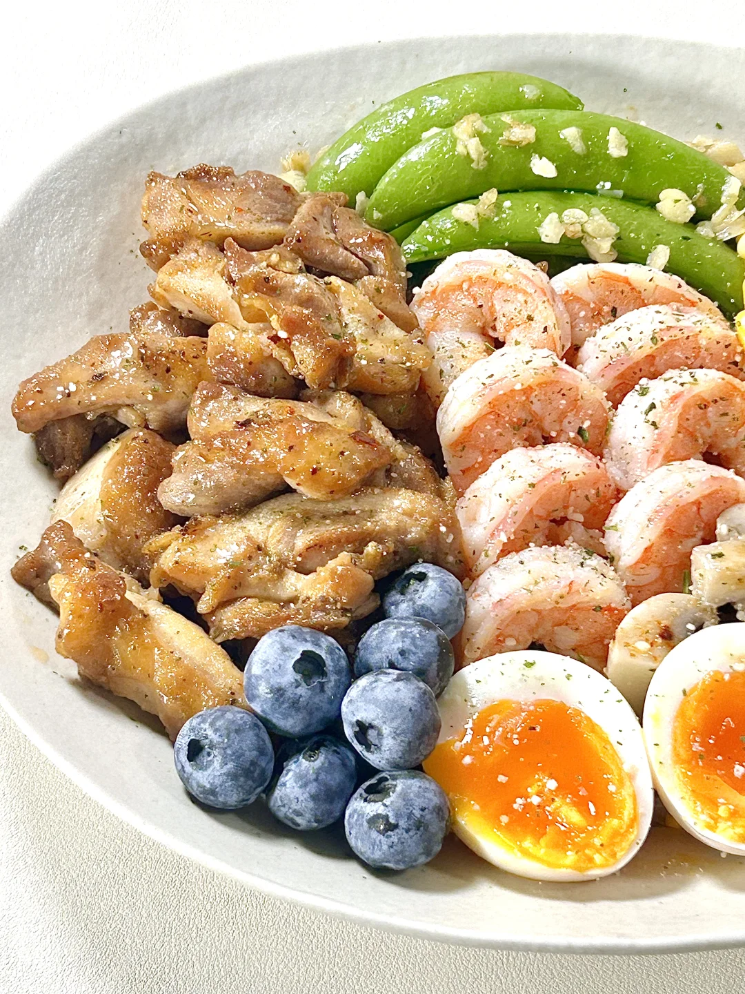 干净饮食🥗荷兰豆虾仁鸡腿肉拼盘🍤