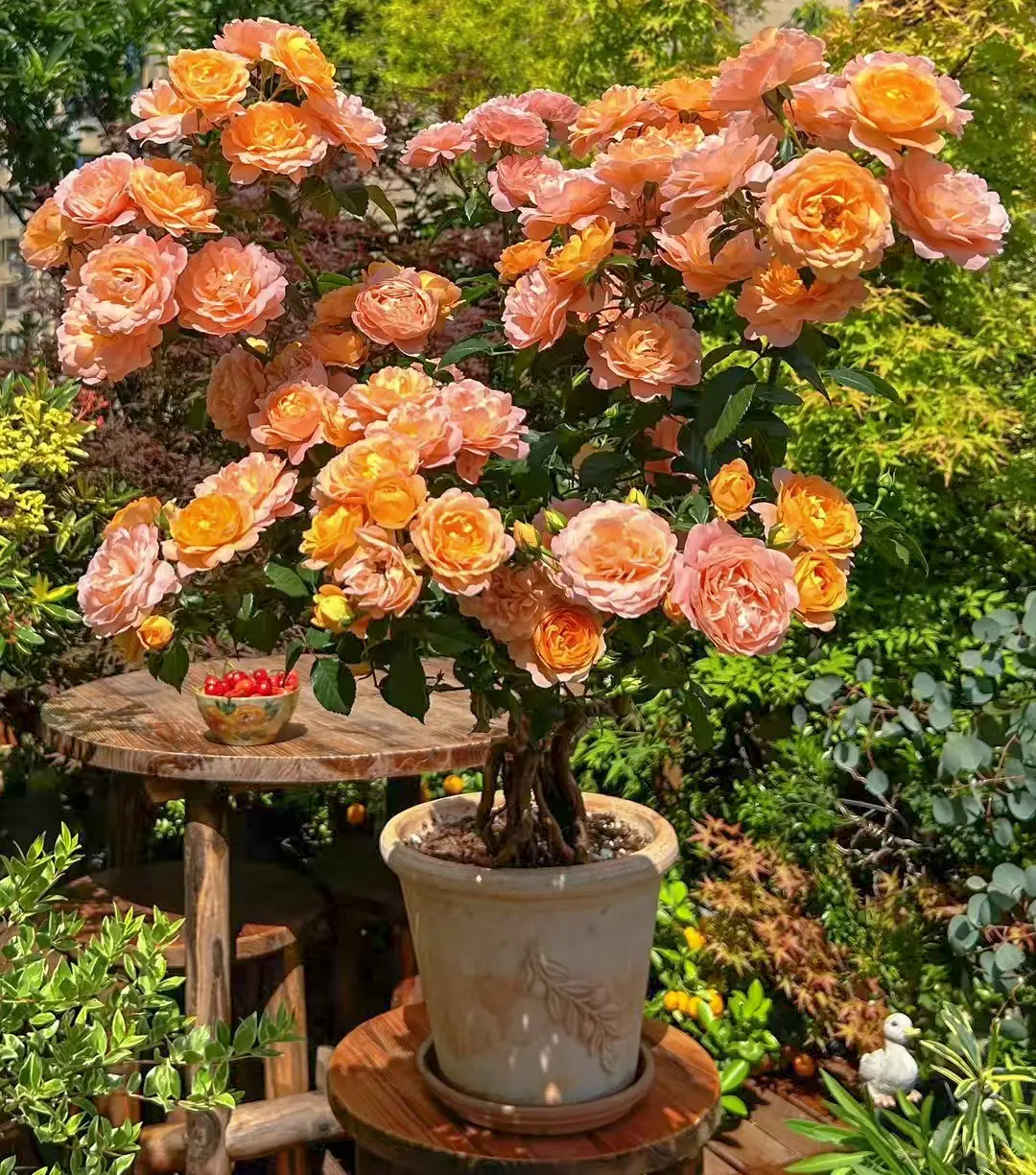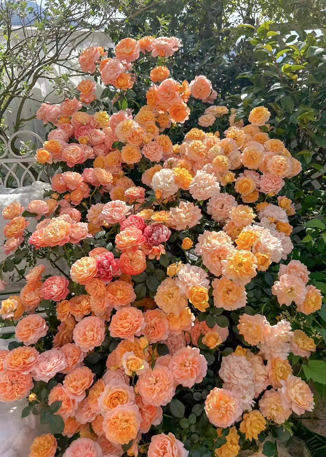 养花人必备月季,开花机器果汁阳台。如果只能养一株月季,那么我建议你养果汁阳台吧!如果你能养两株月季,那么再养一株果汁阳台吧! 花友可欣种了两棵月季果汁阳台,一年至少开6波,特别皮实好养,只需要掌握两招,就能实现爆花状态: 1、极简修剪法 花败后从花枝下第1-2片叶子处剪掉 新芽很快从叶腋冒出,再次开花 2、前倾种植法 种花不居中,靠盆前方种植 修剪与疏蕾都朝同一前方操作 轻松实现花朵统一朝前开放!