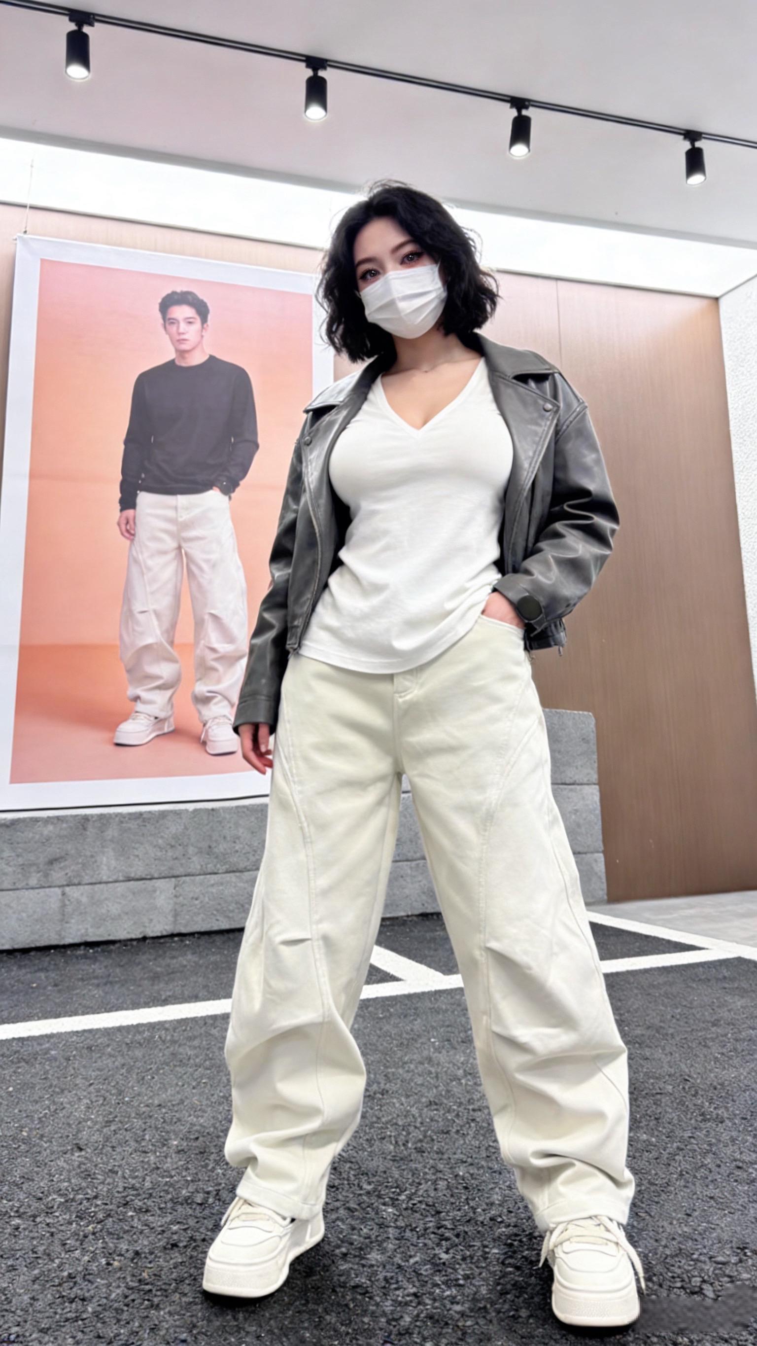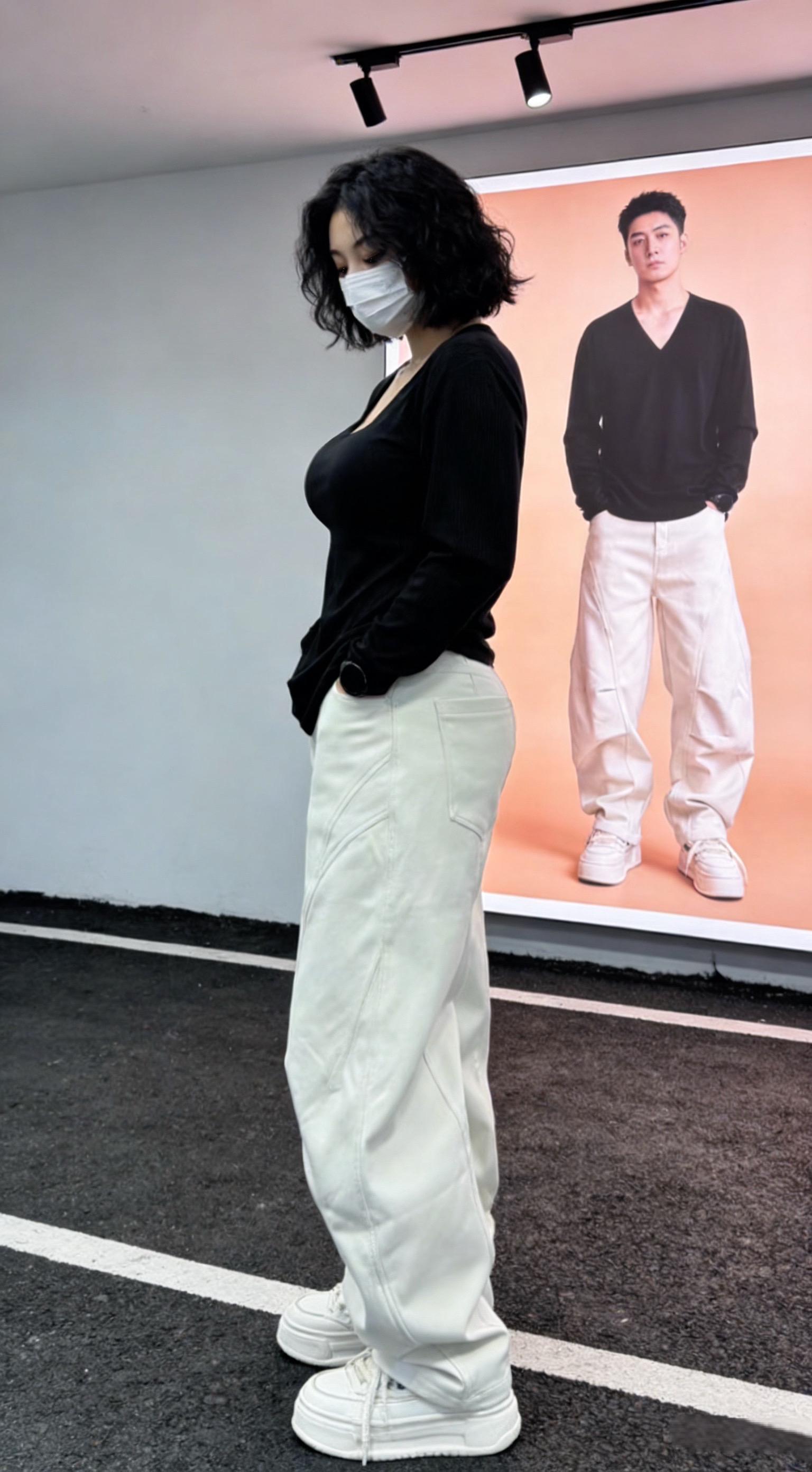 秋冬季加绒加厚拼接垂感阔腿弯刀裤褶皱简约高街水洗牛仔长裤