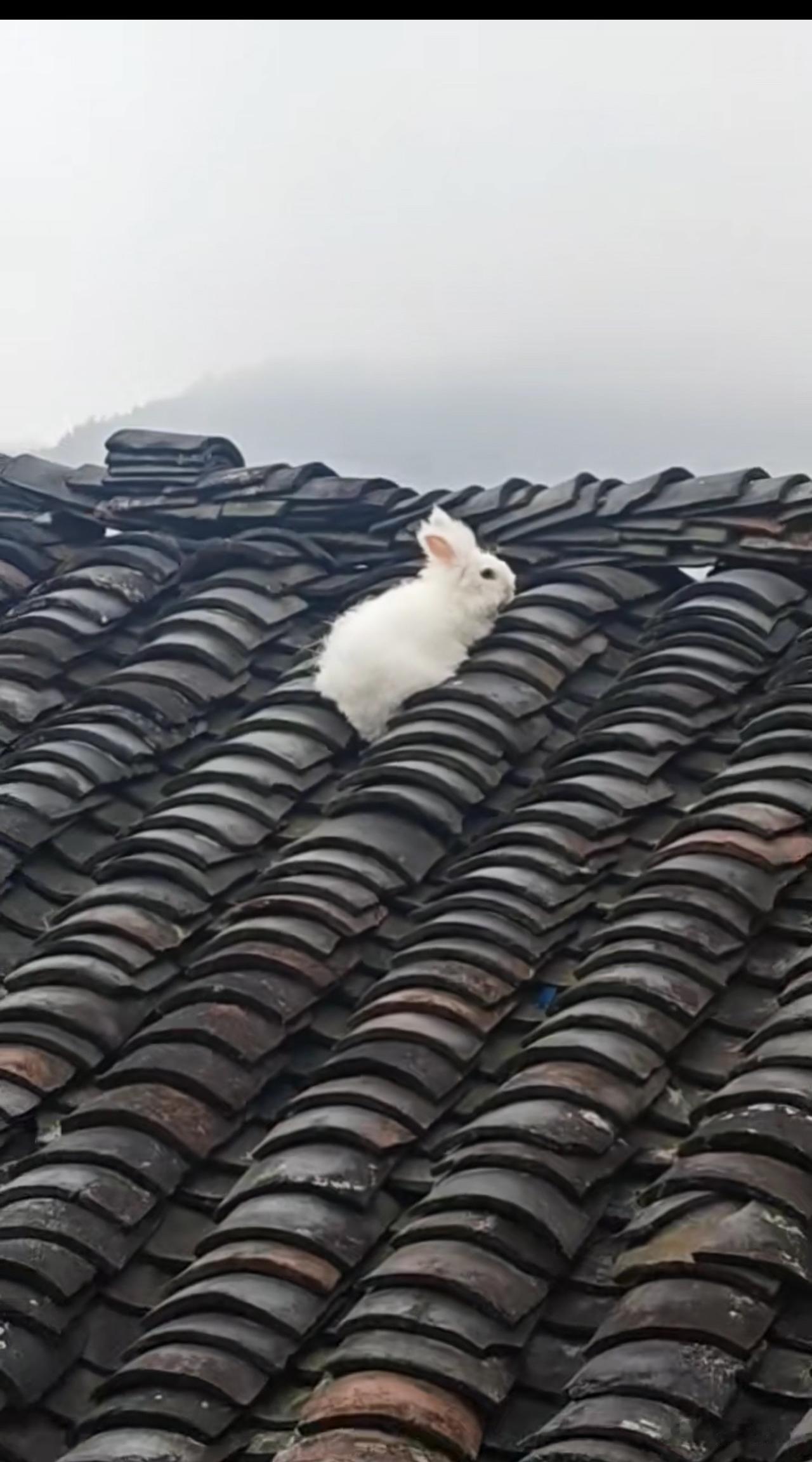 朋友圈,看到一个同学发的。好家伙,兔子跑去瓦房顶上去了,这怎么抓?