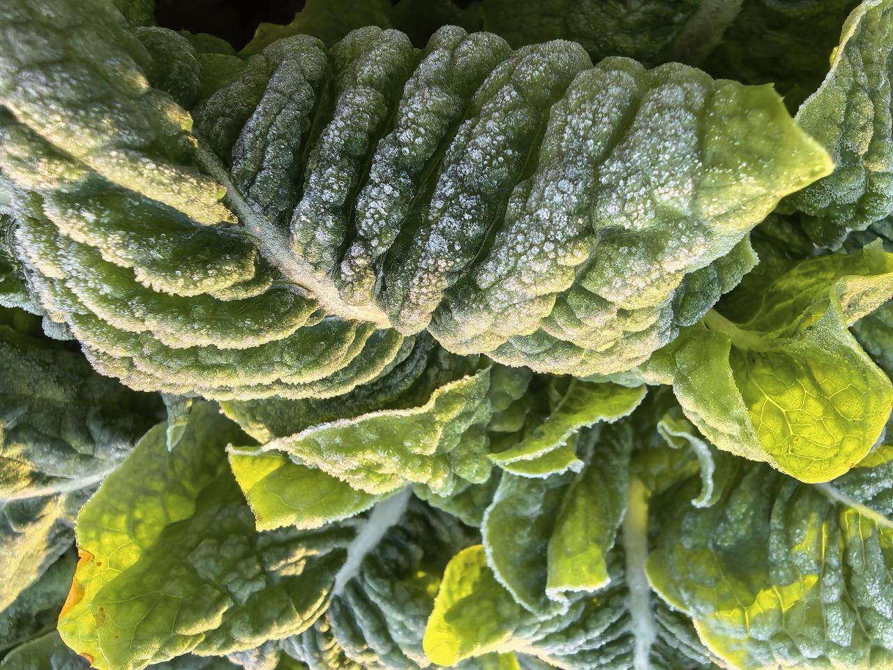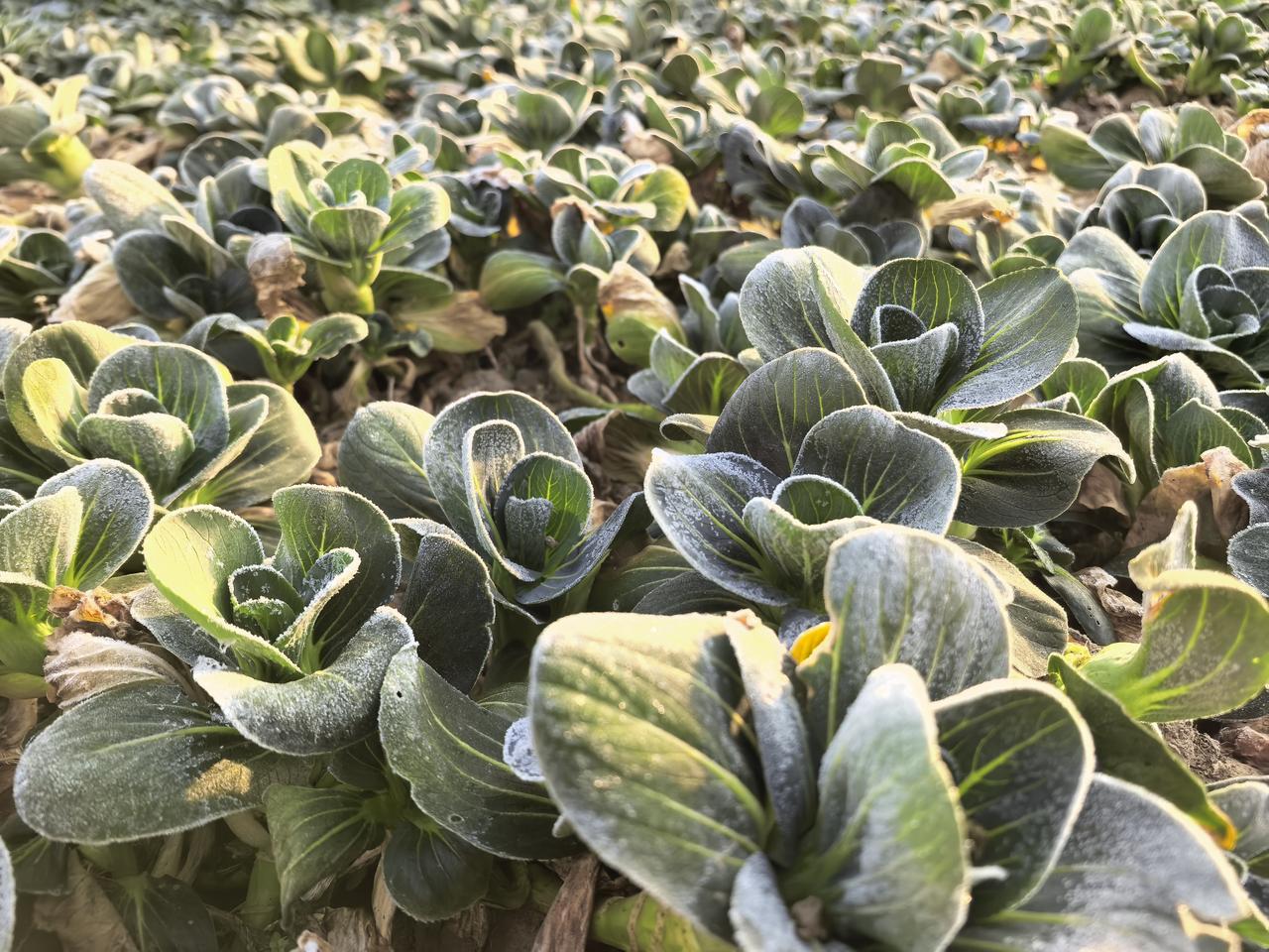 晓来庭户外,霜华似初雪”。 四九时节,江南多地迎来连续霜冻天。 这个乡下的清晨,很多植物叶子都铺上了一层洁白的霜花。 霜打过是植物经历了自然界中低温的影响,引发了植物细胞中的一些生理变化。 植物为了不被冻的结冰,可能会发生将淀粉转化为可溶性糖的化学反应。 植物虽然发生这样的反应,也难免受到一些损伤,细胞里面部分可溶性糖外渗出来。 更重要的是在低温的情况下,会抑制植物合成一些苦味涩味的物质,这样吃起来口感好很多。 江南的霜打菜是寒冬与土地的默契馈赠。 当这份带着寒霜气息的清甜走上餐桌,便让平凡的冬日三餐有了温暖的仪式感。 不妨趁着时节正好,寻一份本地的霜打菜,用最简单的烹饪方式,品尝这份来自冬日的鲜美馈赠!