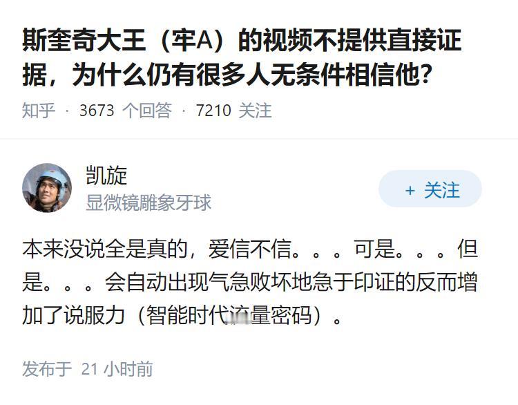 斯奎奇大王(牢A)的视频不提供直接证据,为什么仍有很多人无条件相信他?